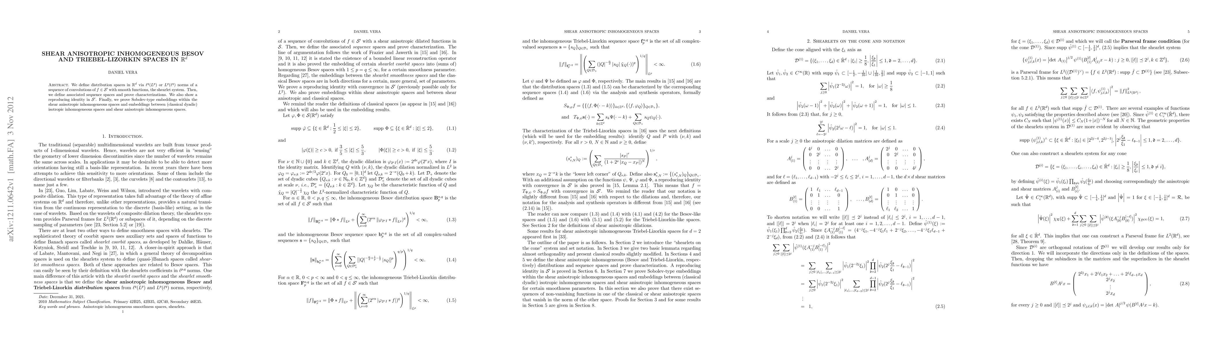 We define distribution spaces of a sequence of convolutions of a set of distributions with smooth functions, the shearlet system. Then, we define associated sequence spaces and prove characterizations. We also show a reproducing identity in the class of distributions. Finally, we prove Sobolev-type embeddings within the shear anisotropic inhomogeneous spaces and embeddings between (classical dyadic) isotropic inhomogeneous spaces and shear anisotropic inhomogeneous spaces.