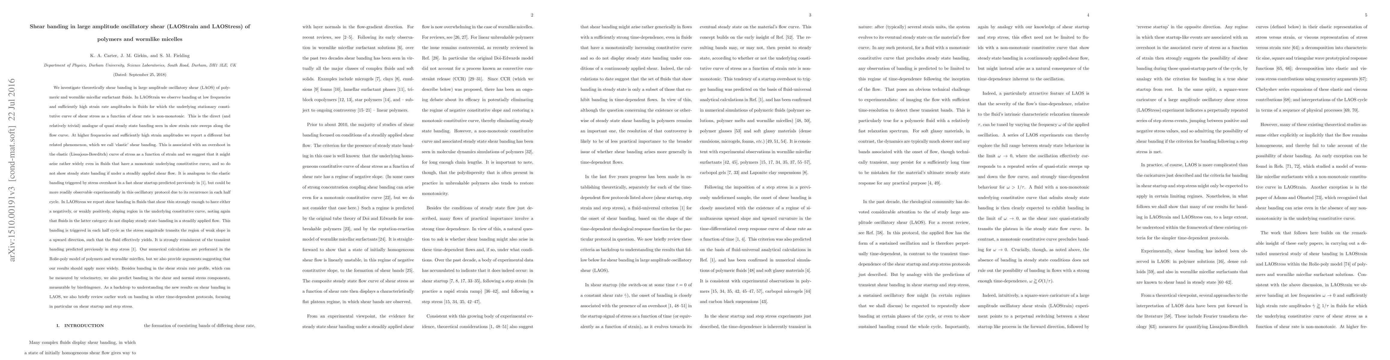 This paper explores shear banding phenomena in large amplitude oscillatory shear (LAOS) of polymers and wormlike micelles, identifying two types: quasi steady state banding at low frequencies and 'elastic' shear banding at higher frequencies. The study suggests that these behaviors can occur even in fluids with monotonic constitutive curves, and predicts measurable banding in shear and normal stress components.