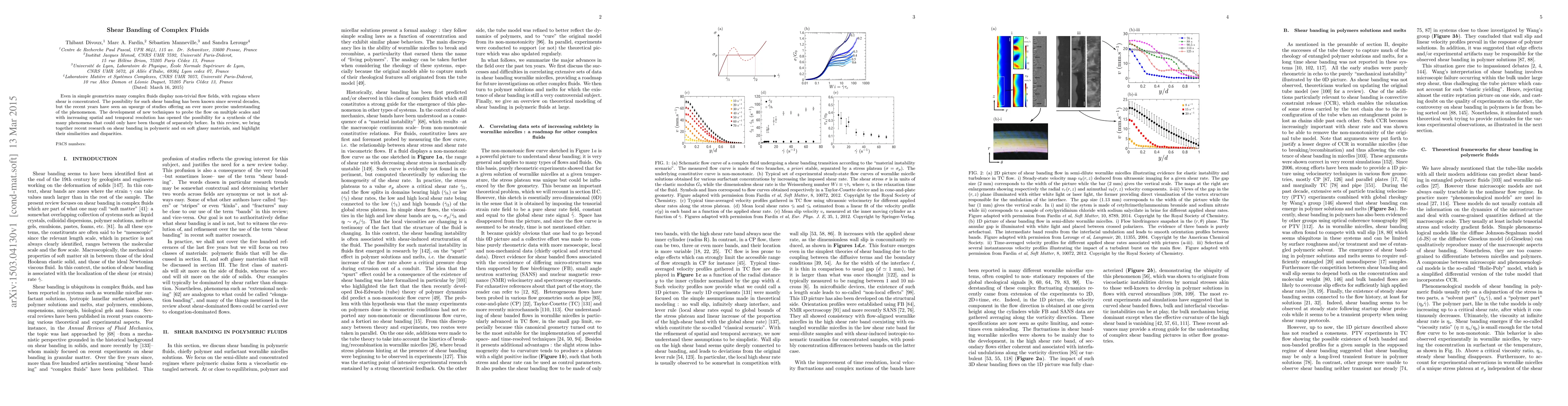 This paper reviews recent advancements in understanding shear banding in complex fluids, focusing on polymeric and soft glassy materials. It synthesizes findings from new techniques that reveal similarities and differences in the flow behaviors of these materials.