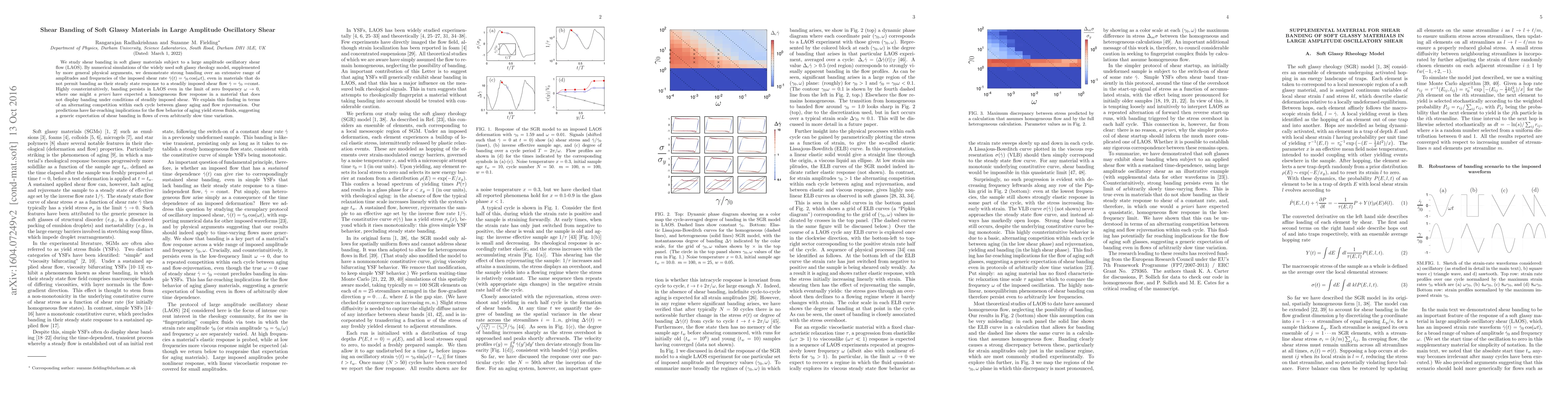This study reveals that soft glassy materials exhibit shear banding under large amplitude oscillatory shear, despite not showing banding under steady shear conditions. This phenomenon persists even at very low frequencies, attributed to the interplay between aging and rejuvenation processes.