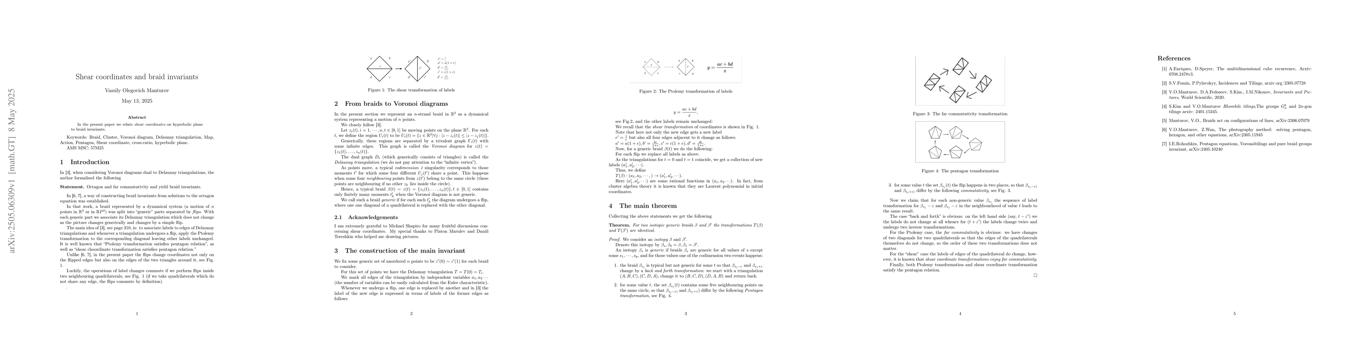 The research introduces shear coordinates in hyperbolic geometry for deriving braid invariants, with a tropical analogue also presented.