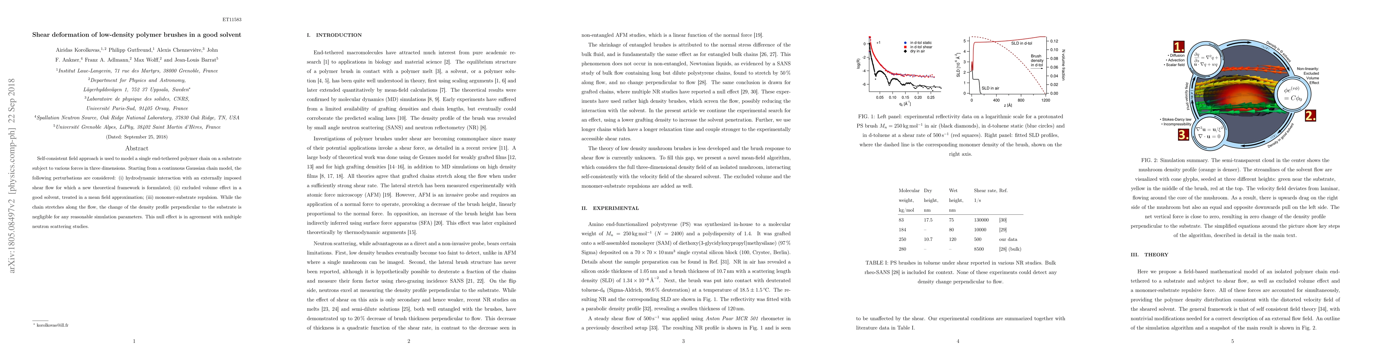 Self-consistent field approach is used to model a single end-tethered polymer chain on a substrate subject to various forces in three dimensions. Starting from a continuous Gaussian chain model, the following perturbations are considered: (i) hydrodynamic interaction with an externally imposed shear flow for which a new theoretical framework is formulated; (ii) excluded volume effect in a good solvent, treated in a mean field approximation; (iii) monomer-substrate repulsion. While the chain stretches along the flow, the change of the density profile perpendicular to the substrate is negligible for any reasonable simulation parameters. This null effect is in agreement with multiple neutron scattering studies.