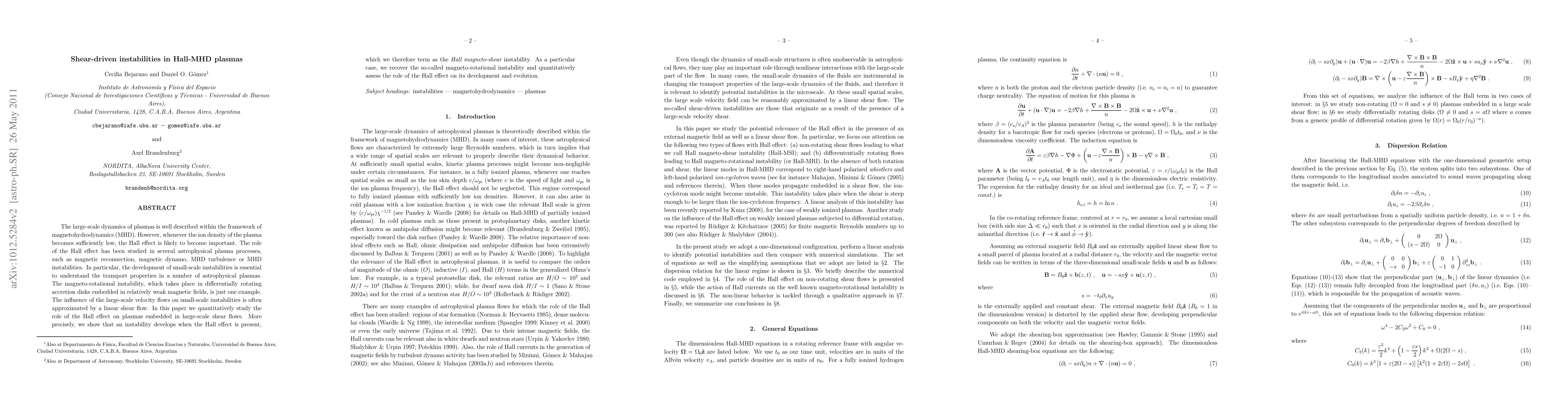 This paper investigates the influence of the Hall effect on plasmas within large-scale shear flows, identifying a new instability termed the Hall magneto-shear instability. This study quantifies the Hall effect's role in the development of small-scale instabilities, including the magneto-rotational instability in accretion disks.