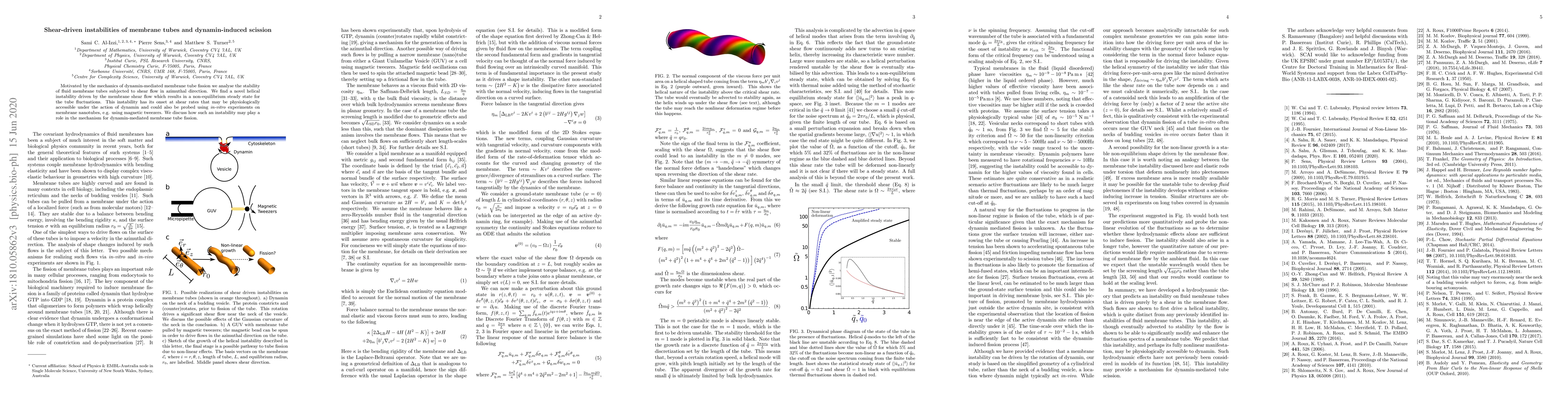 Researchers studied the stability of fluid membrane tubes under shear flow, discovering a novel helical instability that can lead to non-equilibrium states. This finding may play a role in the mechanism for dynamin-mediated membrane tube fission.