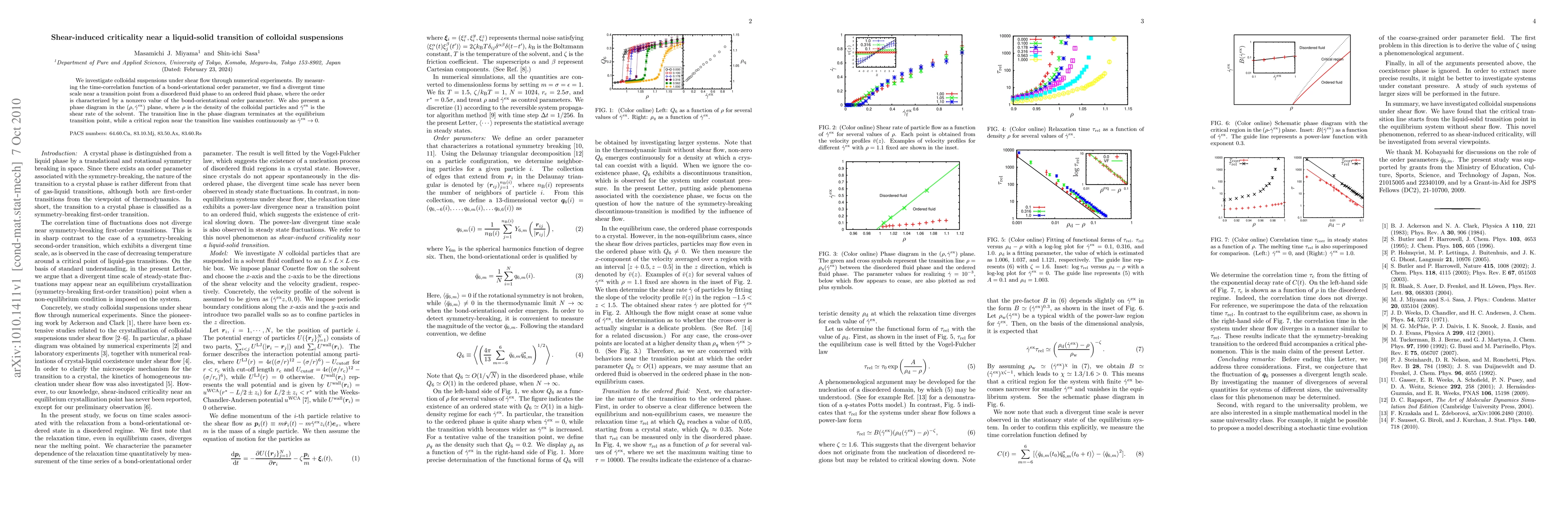 This paper explores the behavior of colloidal suspensions under shear flow, revealing a critical transition from a disordered fluid to an ordered fluid phase characterized by a nonzero bond-orientational order parameter. The study identifies a divergent time scale near this transition and presents a phase diagram indicating the relationship between particle density and shear rate, showing a critical region that vanishes as shear rate approaches zero.