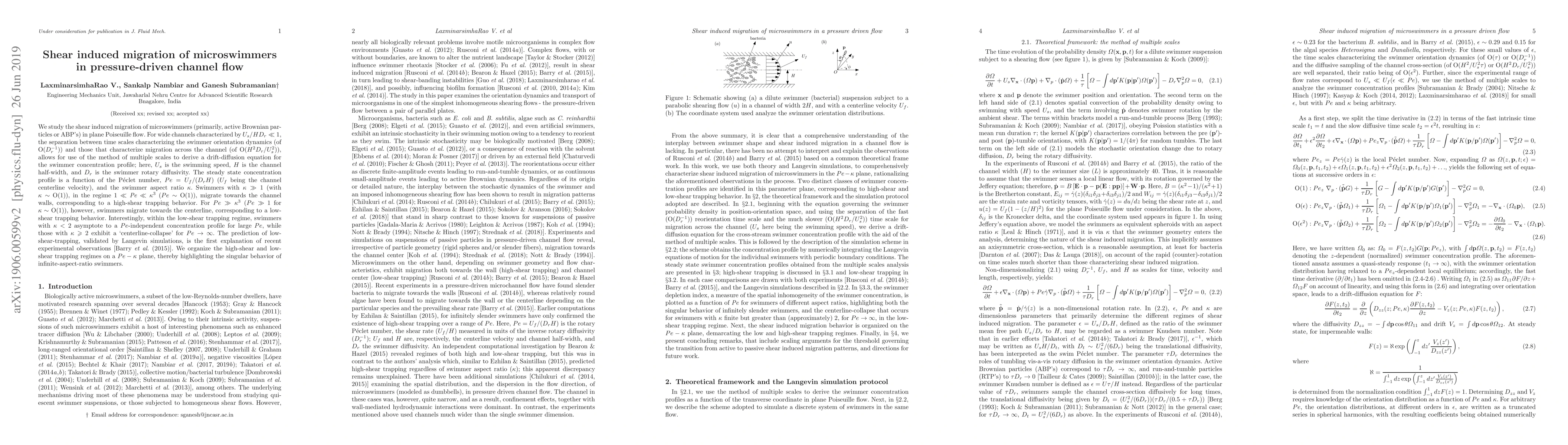 Microswimmers in pressure-driven channel flow migrate towards either channel walls or centerline depending on Peclet number and aspect ratio, with certain swimmers exhibiting low-shear trapping behavior for high Peclet numbers.