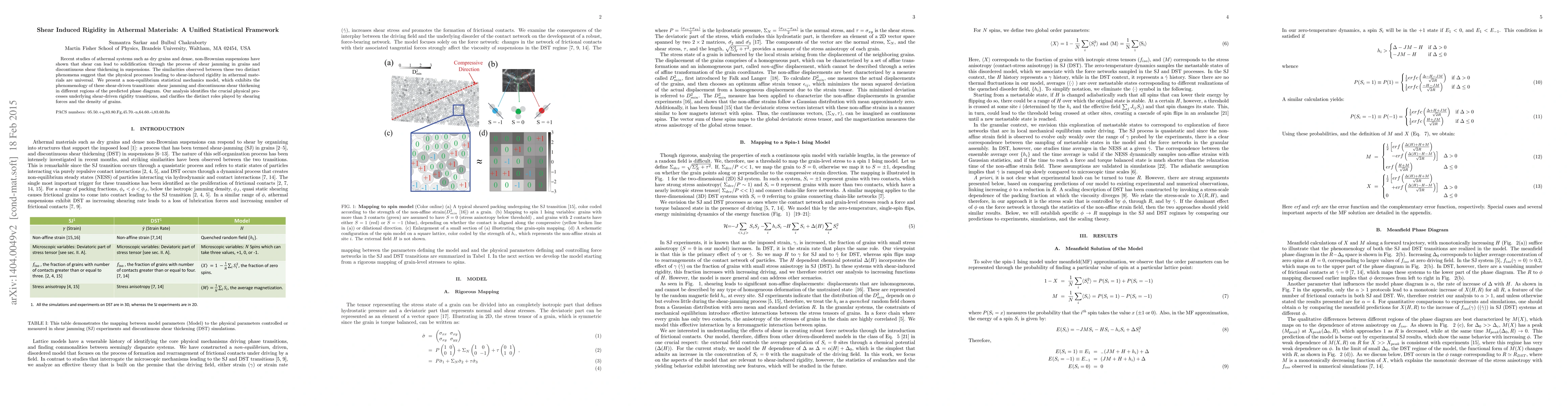 This paper proposes a unified statistical mechanics model to explain the universal physical processes behind shear-induced rigidity in athermal materials, identifying the roles of shearing forces and grain density in phenomena like shear jamming and discontinuous shear thickening. The model predicts distinct phase transitions in these systems.