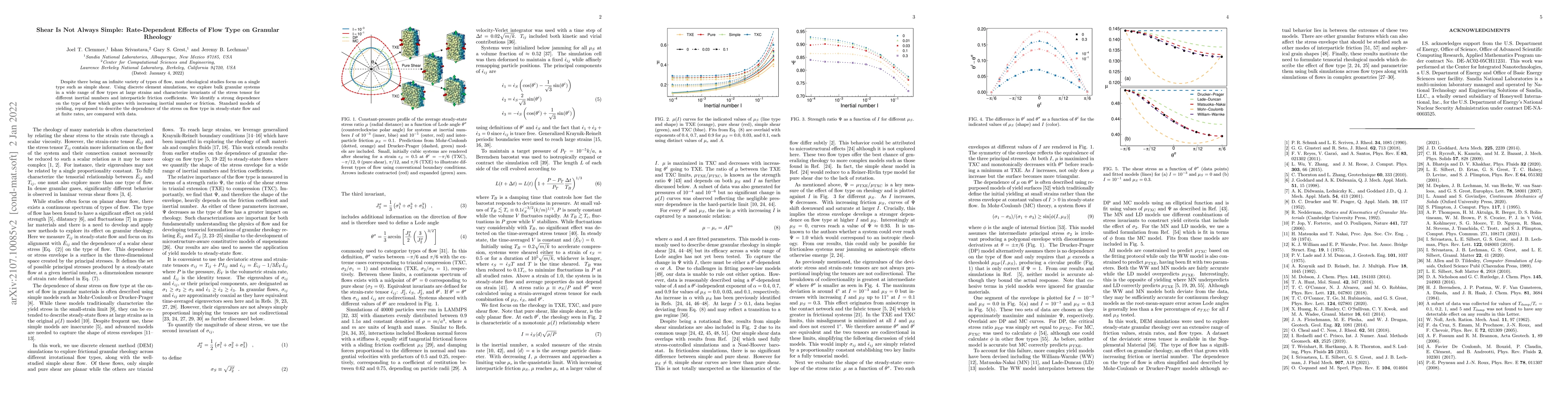Researchers explored how different flow types affect granular rheology using simulations, finding a strong dependence on flow type that grows with increasing inertial number or friction, challenging traditional simple shear models.