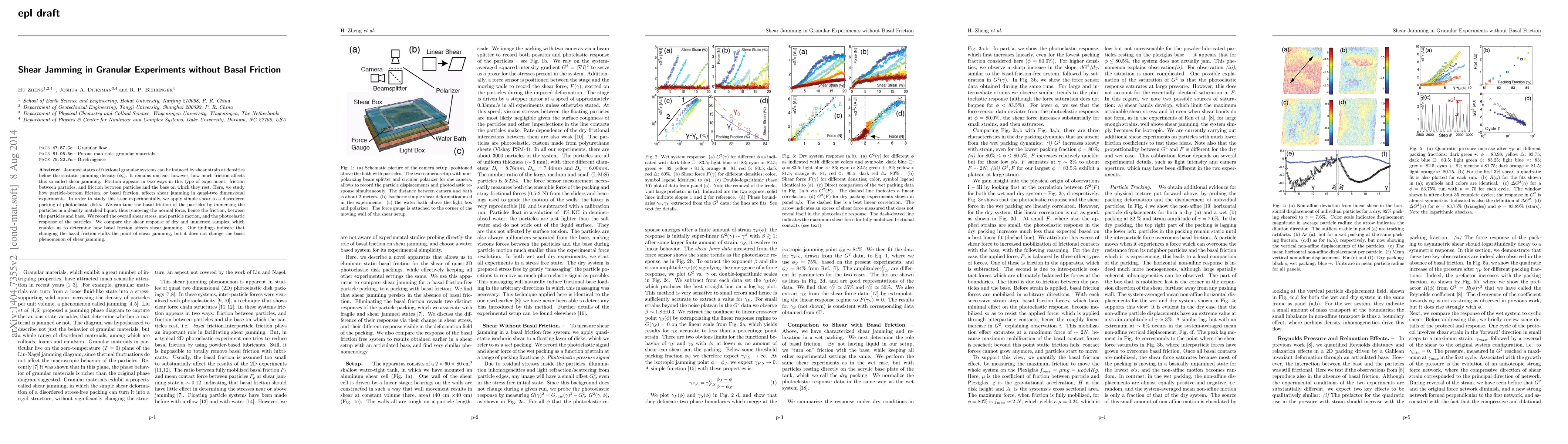 The study uses a quasi-2D shear setup with photoelastic disks to investigate the role of basal friction in shear jamming. Basal friction is manipulated by immersing particles in a liquid to remove normal force and friction between particles and base.