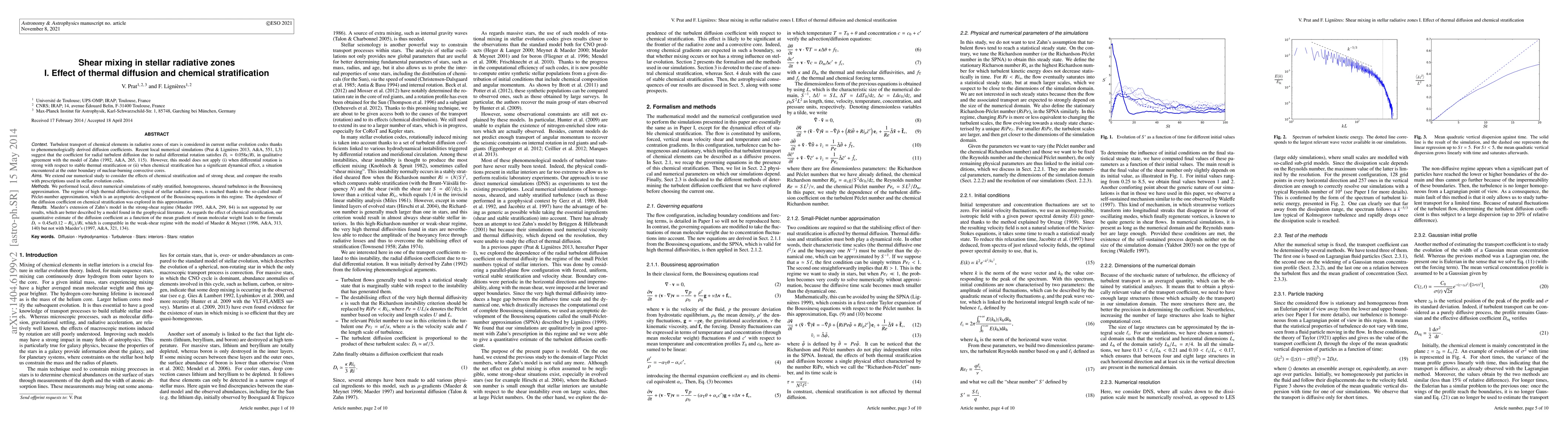 This paper investigates the turbulent transport of chemical elements in stellar radiative zones, focusing on the effects of thermal diffusion and chemical stratification. It finds that Maeder's model for strong shear does not hold, instead proposing a formula $D_{\rm t}\simeq 0.45\kappa(0.12-Ri_\mu)/Ri$ for the diffusion coefficient, which aligns with geophysical models.