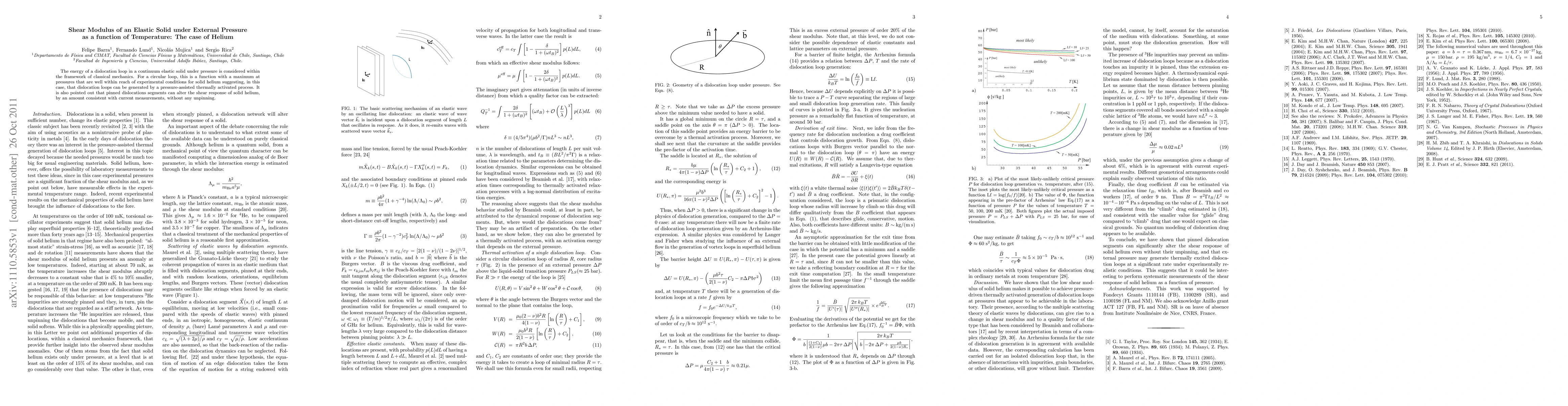 This study investigates the shear modulus of solid helium under external pressure and temperature, revealing that dislocation loops can form via pressure-assisted thermal activation. It also suggests that pinned dislocation segments can modify the shear response of solid helium, aligning with existing measurements.