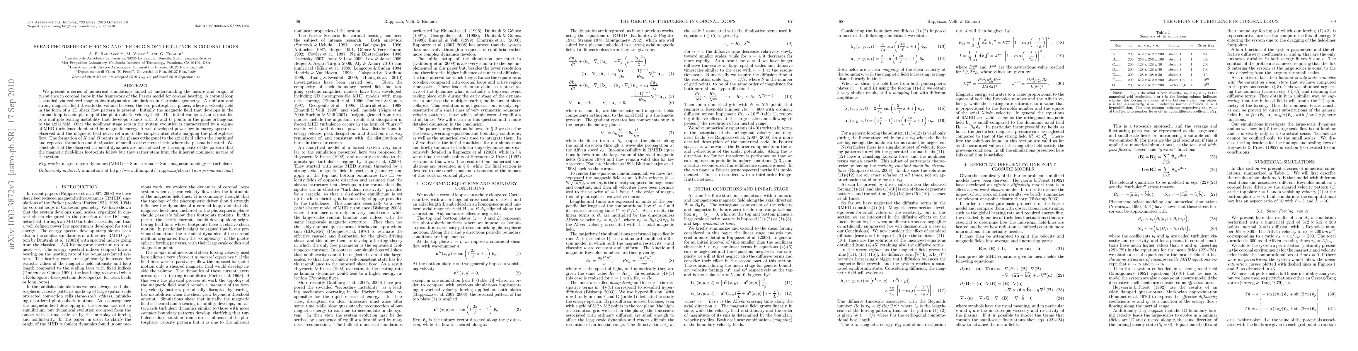 This study uses reduced magnetohydrodynamics simulations to explore the turbulence in coronal loops, driven by shear photospheric forcing. The simulations reveal that turbulence arises from the inherent nonlinear dynamics of the system, rather than the complexity of the magnetic field-line footpoints, leading to the formation of MHD turbulence and small-scale current sheets that heat the plasma.