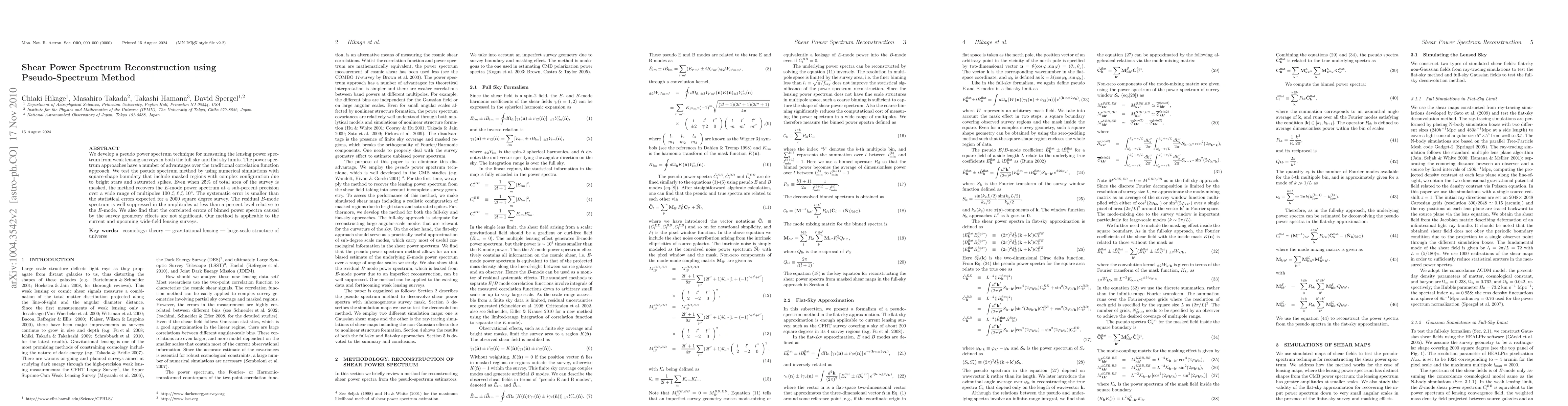 Researchers developed a new method for measuring lensing power spectra from weak lensing surveys with high precision, recovering E-mode spectrum even with 25% of total area masked.