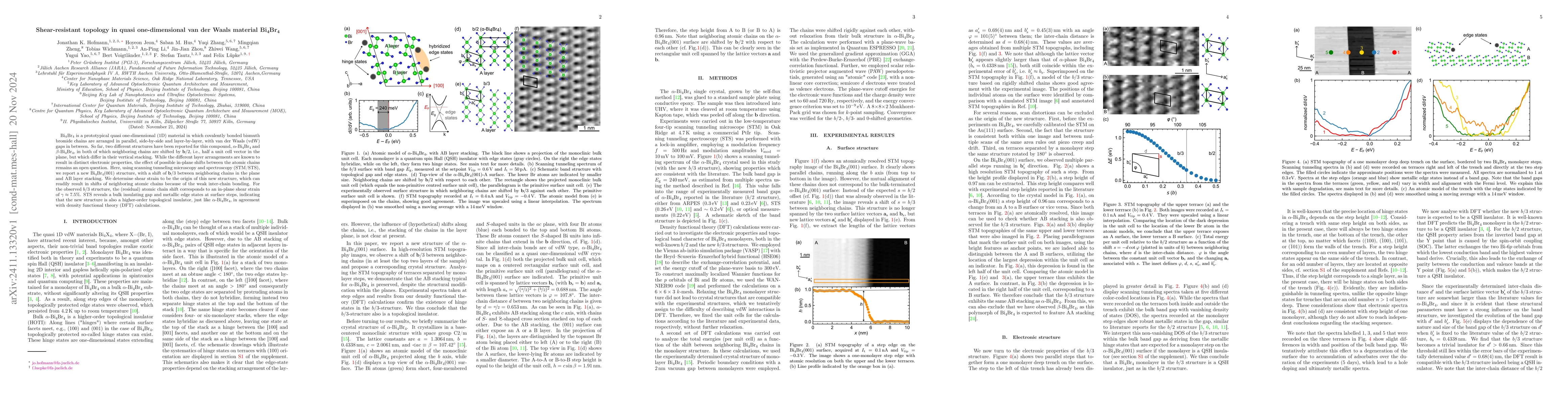 The paper reports a new quasi one-dimensional van der Waals material Bi$_4$Br$_4$ with a $\mathbf{b}/3$ in-plane atomic chain shift and AB layer stacking, caused by shear strain. This structure maintains the material's topological insulating properties, confirmed by scanning tunneling microscopy, spectroscopy, and density functional theory calculations.