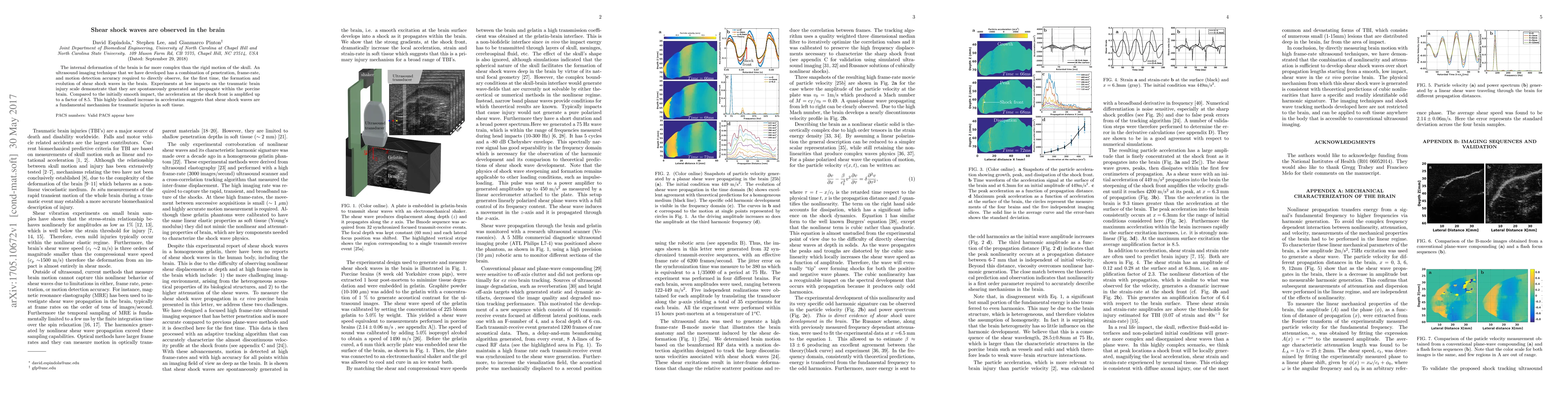 This study uses advanced ultrasound imaging to observe, for the first time, the formation and propagation of shear shock waves in the brain during low-impact conditions, revealing an amplified acceleration factor of up to 8.5 and suggesting these waves play a key role in traumatic soft tissue injuries.