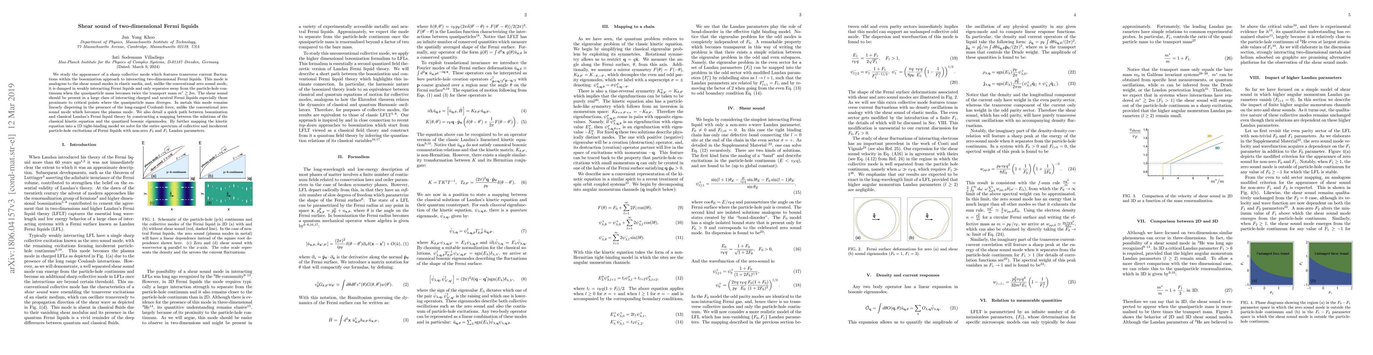 This research reveals a new sharp collective mode in two-dimensional Fermi liquids, analogous to shear sound in elastic media, which is damped and emerges only when the quasiparticle mass exceeds twice the transport mass. The study also establishes a connection between bosonization and classical Landau's Fermi liquid theory, and maps kinetic equations to a 1D tight-binding model to analyze the spectrum of excitations.