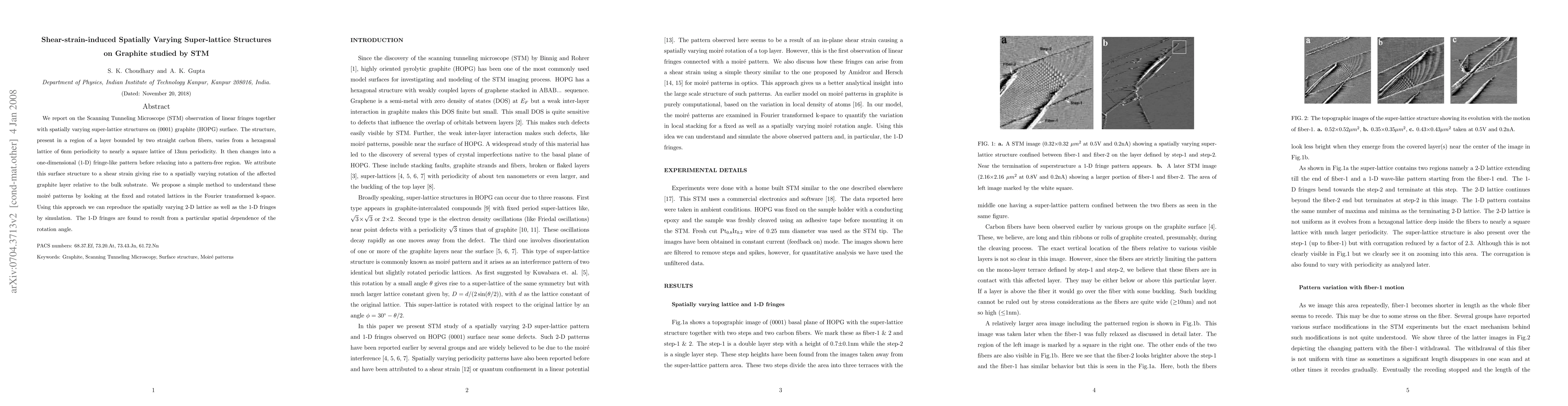 Researchers used a scanning tunneling microscope to study changes in graphite's surface structure when subjected to shear strain, creating spatially varying super-lattice patterns that can be simulated and understood through Fourier transform analysis.