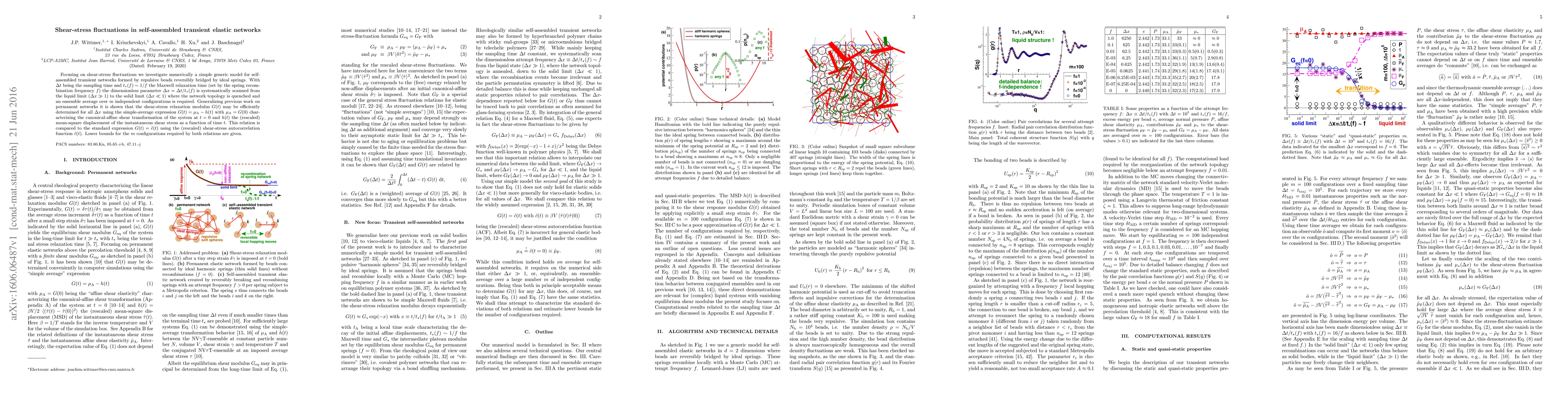 This paper numerically investigates shear-stress fluctuations in self-assembled transient elastic networks, showing that the shear-stress relaxation modulus $G(t)$ can be determined using the expression $G(t) = \mu_A - h(t)$ across different sampling times, contrasting with the standard $G(t) = C(t)$ relation. Lower bounds for the number of configurations required for both relations are also provided.