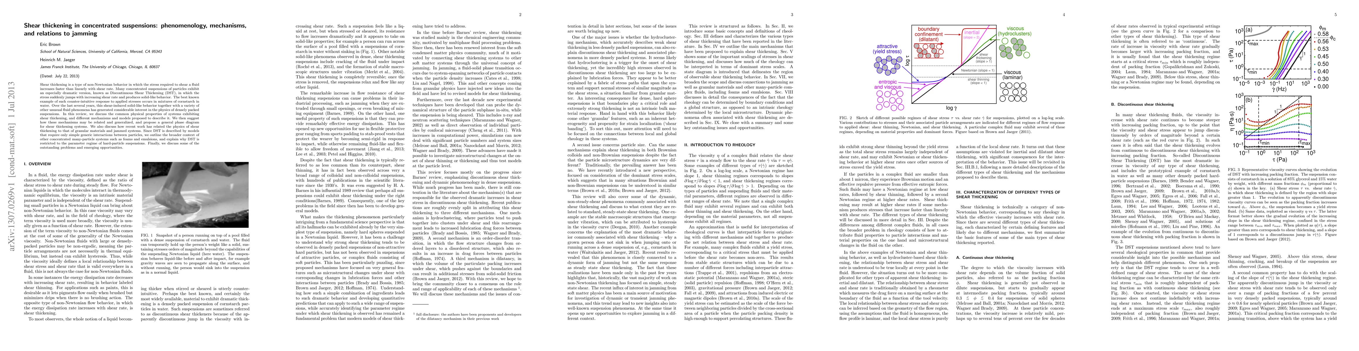 This paper reviews the phenomenology and mechanisms of shear thickening in concentrated suspensions, highlighting Discontinuous Shear Thickening (DST) and its relation to jamming and granular materials. It proposes a generalized phase diagram and discusses the broader context of many-particle systems.
