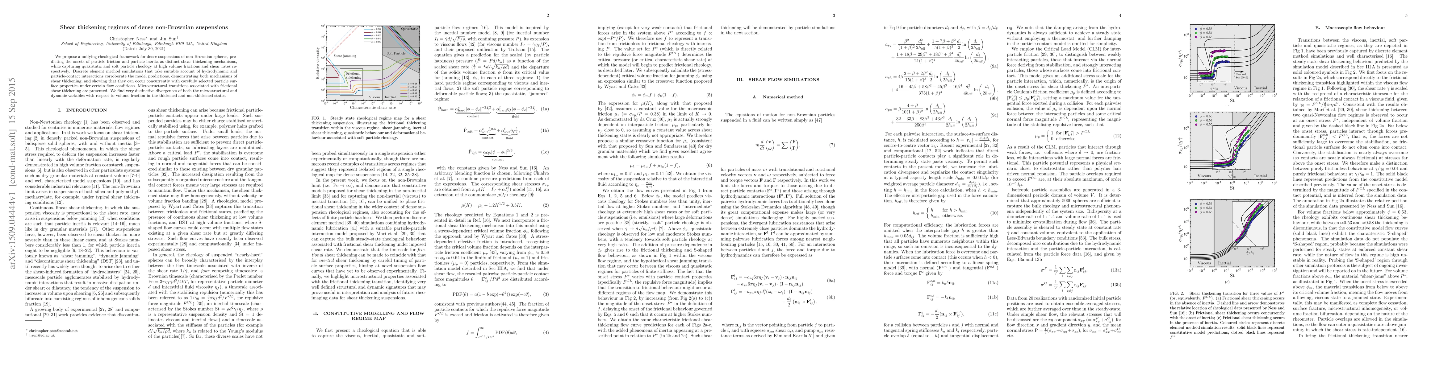 This paper presents a rheological framework for dense non-Brownian suspensions, identifying distinct mechanisms for shear thickening due to particle friction and inertia. Simulations validate the model, showing concurrent shear thickening under specific conditions and highlighting microstructural transitions and volume fraction effects.