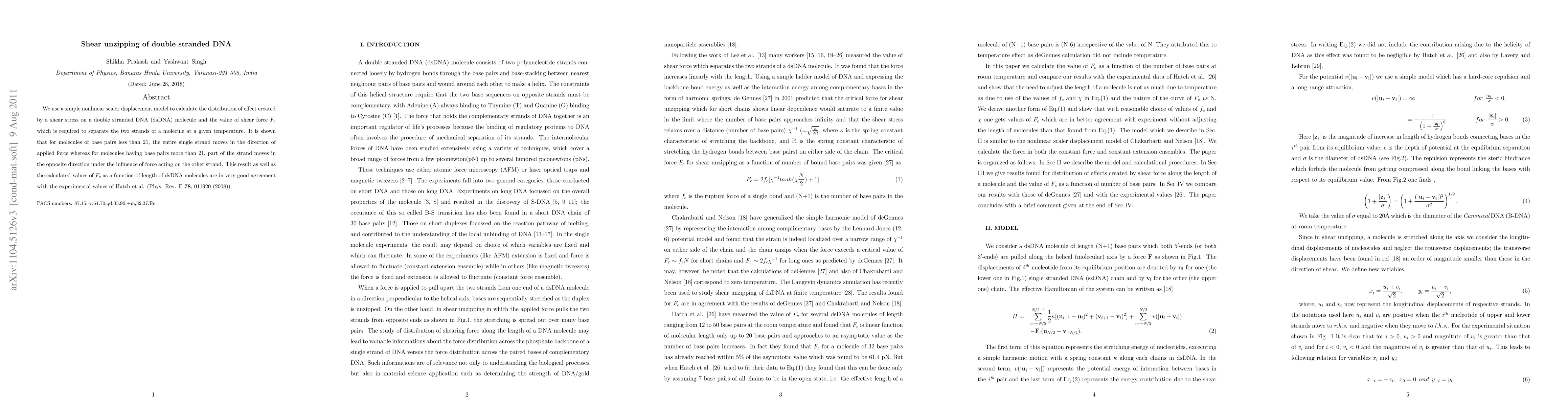 Researchers propose a model to predict how shear stress affects double-stranded DNA, finding that force required to separate strands depends linearly on length when only one strand is pulled in the direction of the force.
