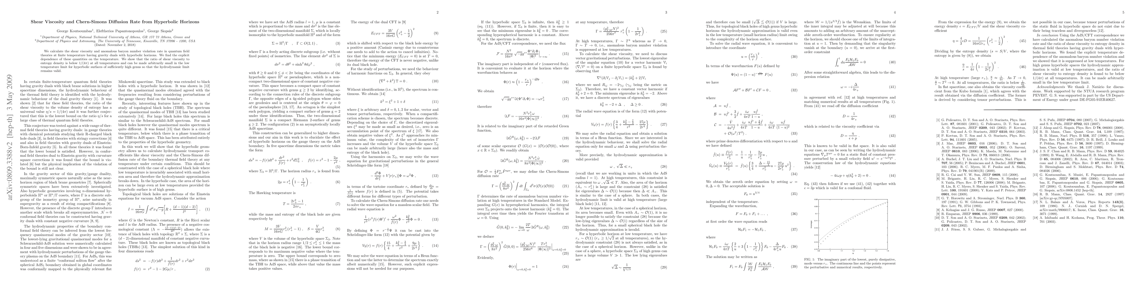 We calculate the shear viscosity and anomalous baryon number violation rate in quantum field theories at finite temperature having gravity duals with hyperbolic horizons. We find the explicit dependence of these quantities on the temperature. We show that the ratio of shear viscosity to entropy density is below $1/(4\pi)$ at all temperatures and it can be made arbitrarily small in the low temperature limit.