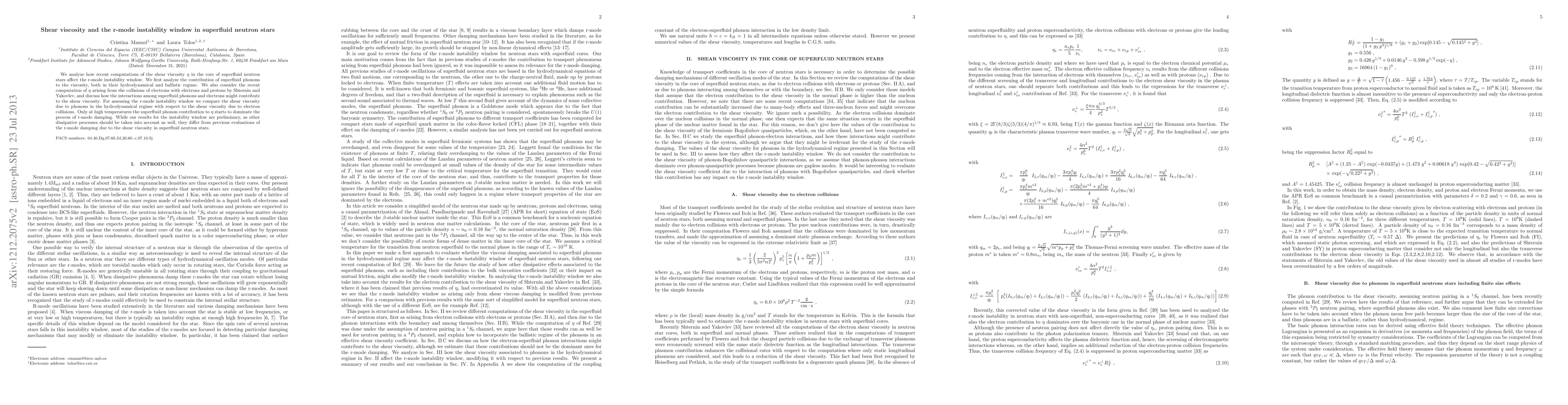 We analyze how recent computations of the shear viscosity $\eta$ in the core of superfluid neutron stars affect the r-mode instability window. We first analyze the contribution of superfluid phonons to the viscosity, both in their hydrodynamical and ballistic regime. We also consider the recent computation of $\eta$ arising from the collisions of electrons with electrons and protons by Shternin and Yakovlev, and discuss how the interactions among superfluid phonons and electrons might contribute to the shear viscosity. For assessing the r-mode instability window we compare the shear viscosity due to phonons in the hydrodynamical regime with respect to the shear viscosity due to electron collisions. Only at high temperatures the superfluid phonon contribution to $\eta$ starts to dominate the process of r-mode damping. While our results for the instability window are preliminary, as other dissipative processes should be taken into account as well, they differ from previous evaluations of the r-mode damping due to the shear viscosity in superfluid neutron stars.