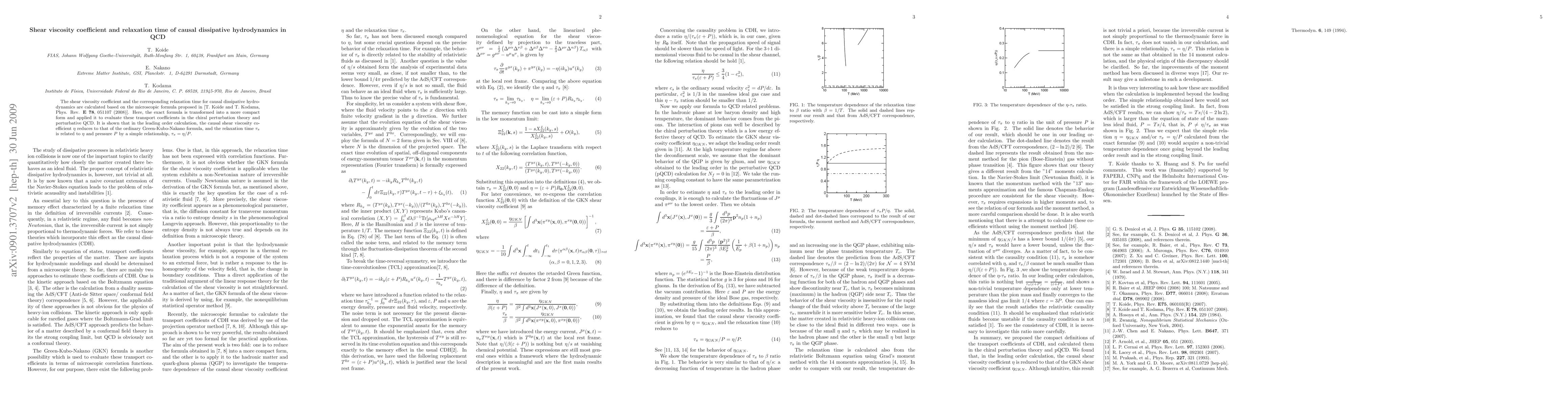 This paper calculates the shear viscosity coefficient and relaxation time for causal dissipative hydrodynamics in QCD using a microscopic formula. It shows that the causal shear viscosity coefficient aligns with the ordinary Green-Kubo-Nakano formula, and the relaxation time is directly proportional to the shear viscosity coefficient and inversely proportional to pressure.