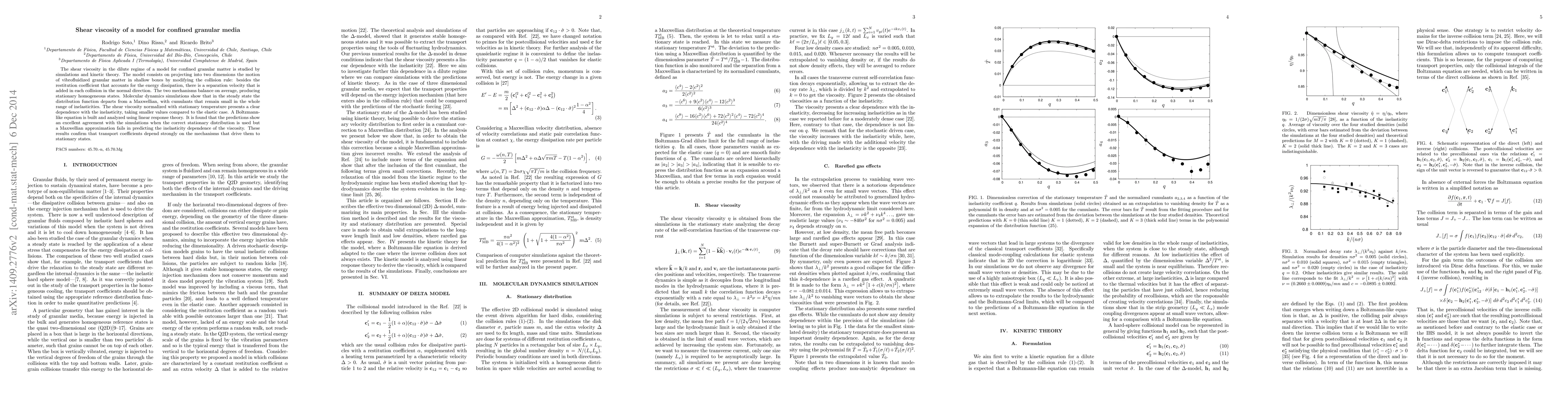 The shear viscosity in the dilute regime of a model for confined granular matter is studied by simulations and kinetic theory. The model consists on projecting into two dimensions the motion of vibrofluidized granular matter in shallow boxes by modifying the collision rule: besides the restitution coefficient that accounts for the energy dissipation, there is a separation velocity that is added in each collision in the normal direction. The two mechanisms balance on average, producing stationary homogeneous states. Molecular dynamics simulations show that in the steady state the distribution function departs from a Maxwellian, with cumulants that remain small in the whole range of inelasticities. The shear viscosity normalized with stationary temperature presents a clear dependence with the inelasticity, taking smaller values compared to the elastic case. A Boltzmann-like equation is built and analyzed using linear response theory. It is found that the predictions show an excellent agreement with the simulations when the correct stationary distribution is used but a Maxwellian approximation fails in predicting the inelasticity dependence of the viscosity. These results confirm that transport coefficients depend strongly on the mechanisms that drive them to stationary states.