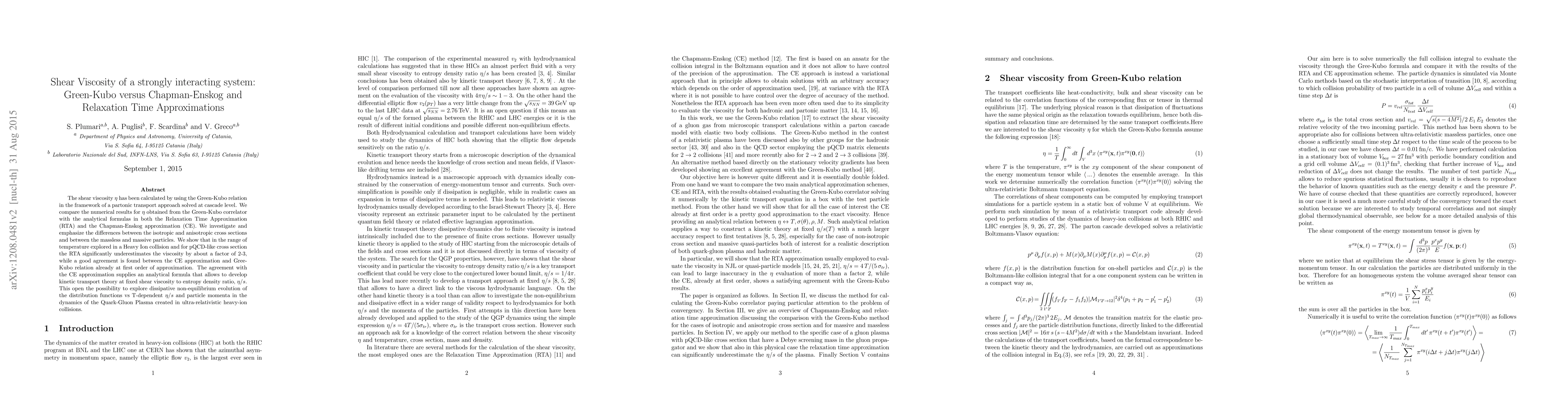The shear viscosity $\eta$ has been calculated by using the Green-Kubo relation in the framework of a partonic transport approach solved at cascade level. We compare the numerical results for $\eta$ obtained from the Green-Kubo correlator with the analytical formulas in both the Relaxation Time Approximation (RTA) and the Chapman-Enskog approximation (CE). We investigate and emphasize the differences between the isotropic and anisotropic cross sections and between the massless and massive particles. We show that in the range of temperature explored in a Heavy Ion collision and for pQCD-like cross section the RTA significantly underestimates the viscosity by about a factor of 2-3, while a good agreement is found between the CE approximation and Gree-Kubo relation already at first order of approximation. The agreement with the CE approximation supplies an analytical formula that allows to develop kinetic transport theory at fixed shear viscosity to entropy density ratio, $\eta/s$. This open the possibility to explore dissipative non-equilibrium evolution of the distribution functions vs T-dependent $\eta/s$ and particle momenta in the dynamics of the Quark-Gluon Plasma created in ultra-relativistic heavy-ion collisions.