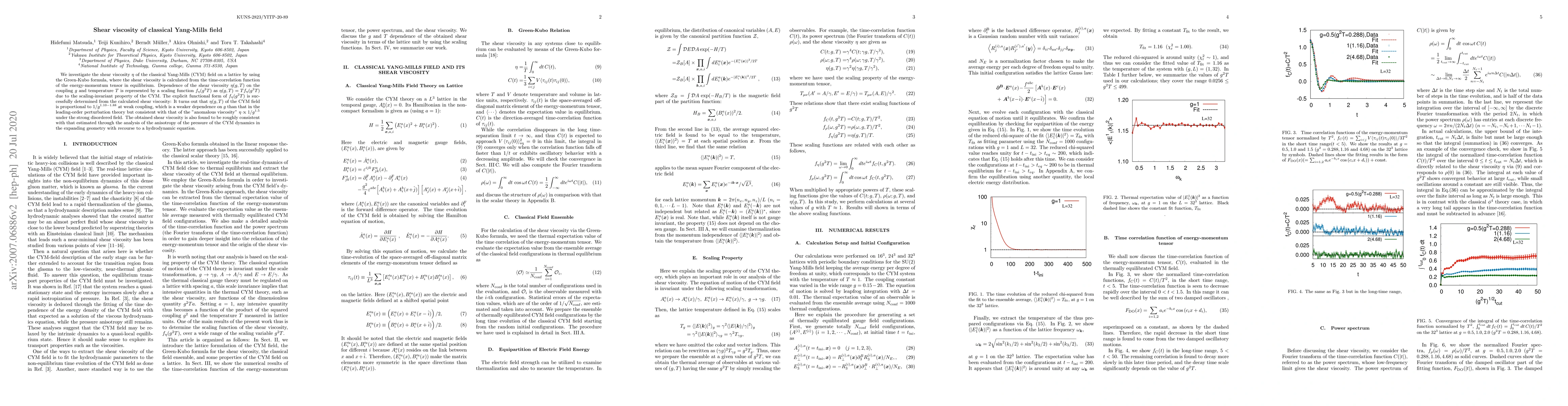 The study calculates the shear viscosity of classical Yang-Mills fields using the Green-Kubo formula and finds it to be proportional to 1/g^1.10-1.88 at weak coupling, with implications for understanding viscosity in strong-field systems.