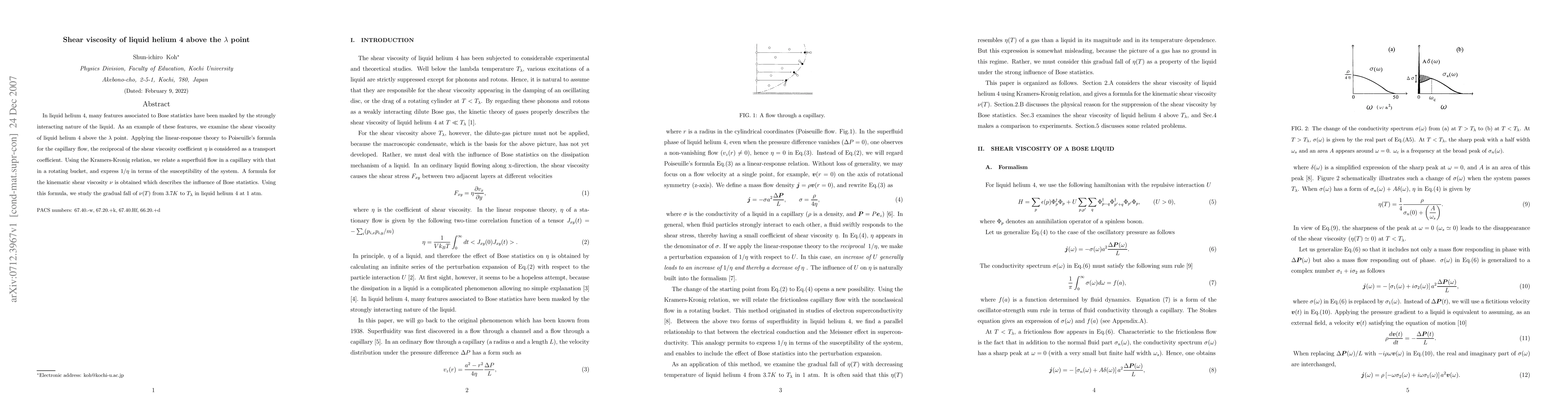 This paper investigates the shear viscosity of liquid helium 4 above the lambda point, applying linear-response theory and the Kramers-Kronig relation to derive a formula for kinematic shear viscosity influenced by Bose statistics. It examines the gradual decrease in shear viscosity as the temperature approaches the lambda point.
