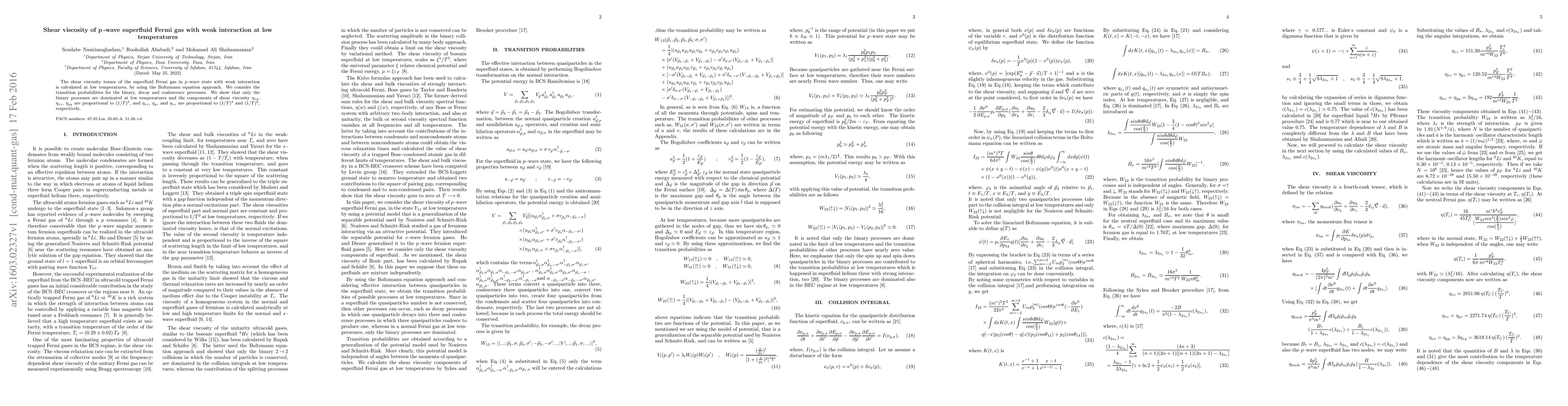 This study calculates the shear viscosity tensor of a weakly interacting p-wave superfluid Fermi gas at low temperatures, revealing that binary processes dominate. The viscosity components are found to scale as (1/T)^2, (1/T)^4, and (1/T)^6 for {\eta}_xy, {\eta}_xx, {\eta}_yy, and {\eta}_xz, {\eta}_yz, {\eta}_zz, respectively.