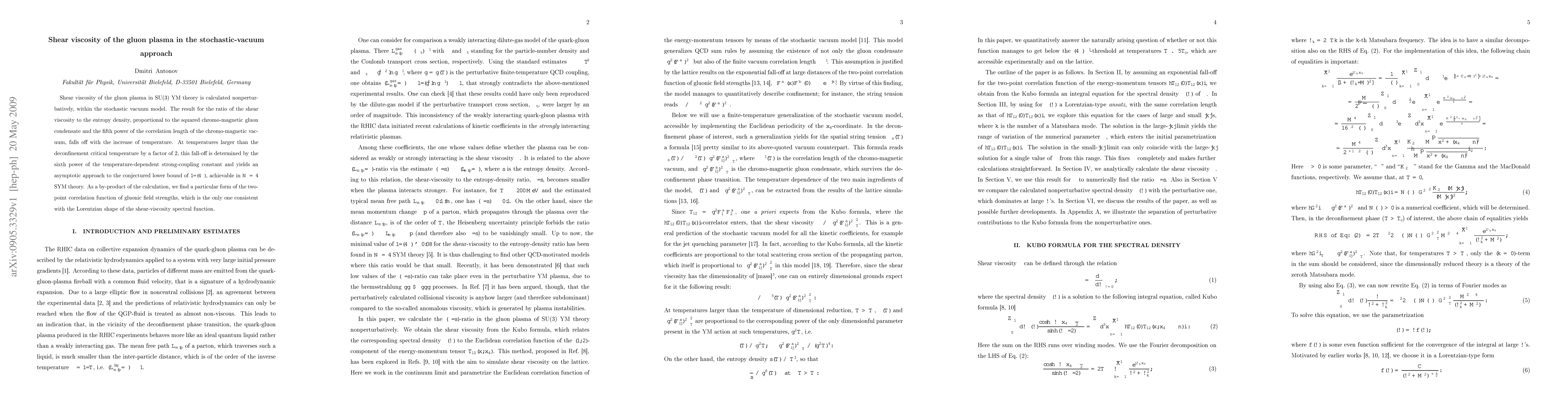 Shear viscosity of the gluon plasma in SU(3) YM theory is calculated nonperturbatively, within the stochastic vacuum model. The result for the ratio of the shear viscosity to the entropy density, proportional to the squared chromo-magnetic gluon condensate and the fifth power of the correlation length of the chromo-magnetic vacuum, falls off with the increase of temperature. At temperatures larger than the deconfinement critical temperature by a factor of 2, this fall-off is determined by the sixth power of the temperature-dependent strong-coupling constant and yields an asymptotic approach to the conjectured lower bound of 1/(4\pi), achievable in {\cal N}=4 SYM theory. As a by-product of the calculation, we find a particular form of the two-point correlation function of gluonic field strengths, which is the only one consistent with the Lorentzian shape of the shear-viscosity spectral function.