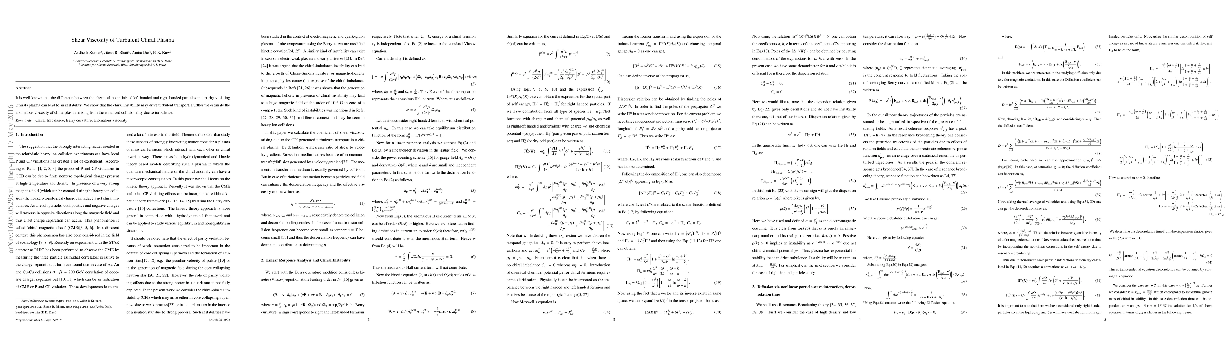 The research demonstrates that chiral instability in plasma can drive turbulent transport, estimating an anomalous viscosity resulting from increased collisionality due to turbulence.
