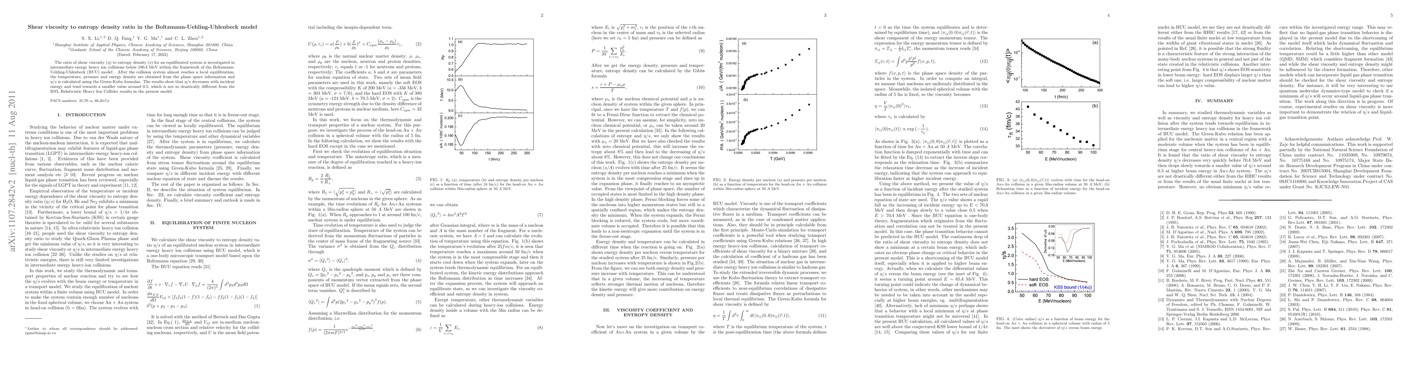 The ratio of shear viscosity ($\eta$) to entropy density ($s$) for an equilibrated system is investigated in intermediate energy heavy ion collisions below 100$A$ MeV within the framework of the Boltzmann-Uehling-Uhlenbeck (BUU) model . After the collision system almost reaches a local equilibration, the temperature, pressure and energy density are obtained from the phase space information and {$\eta/s$} is calculated using the Green-Kubo formulas. The results show that {$\eta$}/$s$ decreases with incident energy and tend towards a smaller value around 0.5, which is not so drastically different from the BNL Relativistic Heavy Ion Collider results in the present model.