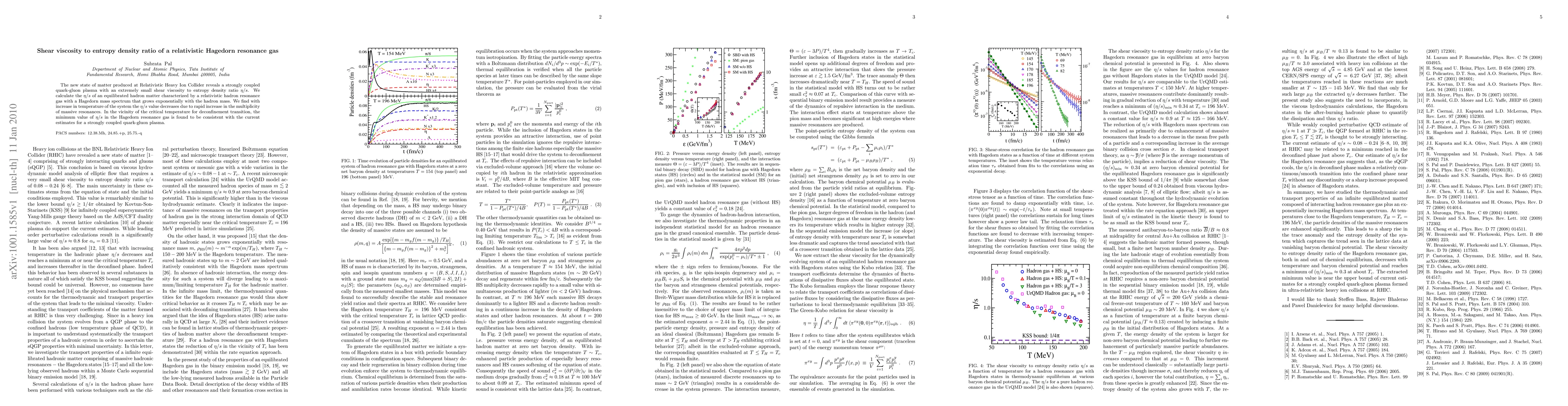 This paper calculates the shear viscosity to entropy density ratio (η/s) for a relativistic Hagedorn resonance gas, finding that η/s decreases with increasing temperature due to the rapid increase in massive resonance multiplicity. Near the critical temperature for deconfinement, η/s reaches a minimum value consistent with estimates for strongly coupled quark-gluon plasma.
