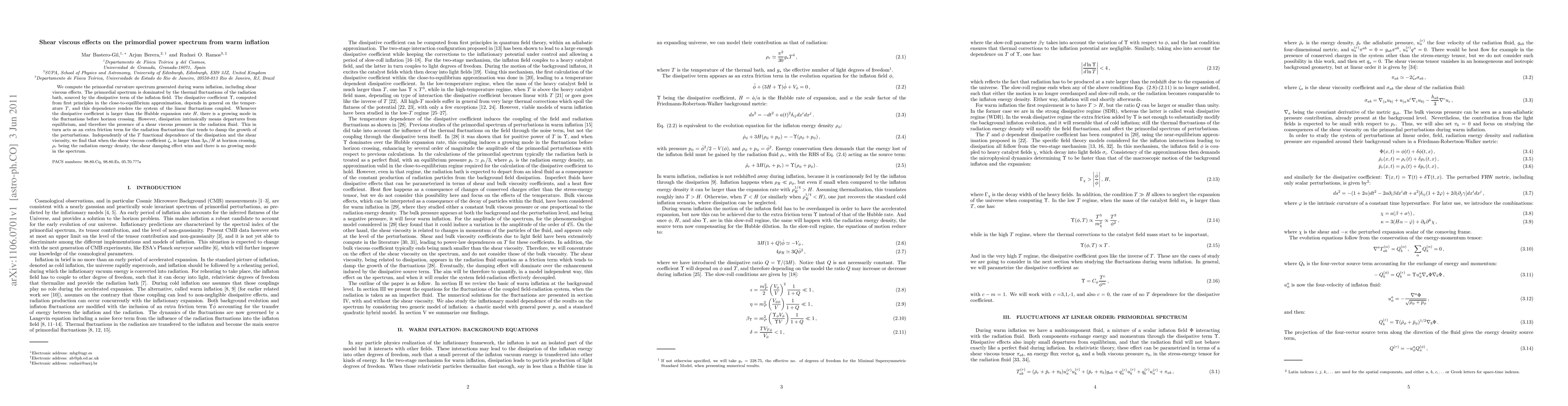This paper investigates how shear viscous effects affect the primordial power spectrum during warm inflation, finding that a certain threshold in the shear damping coefficient determines whether perturbations grow or decay.