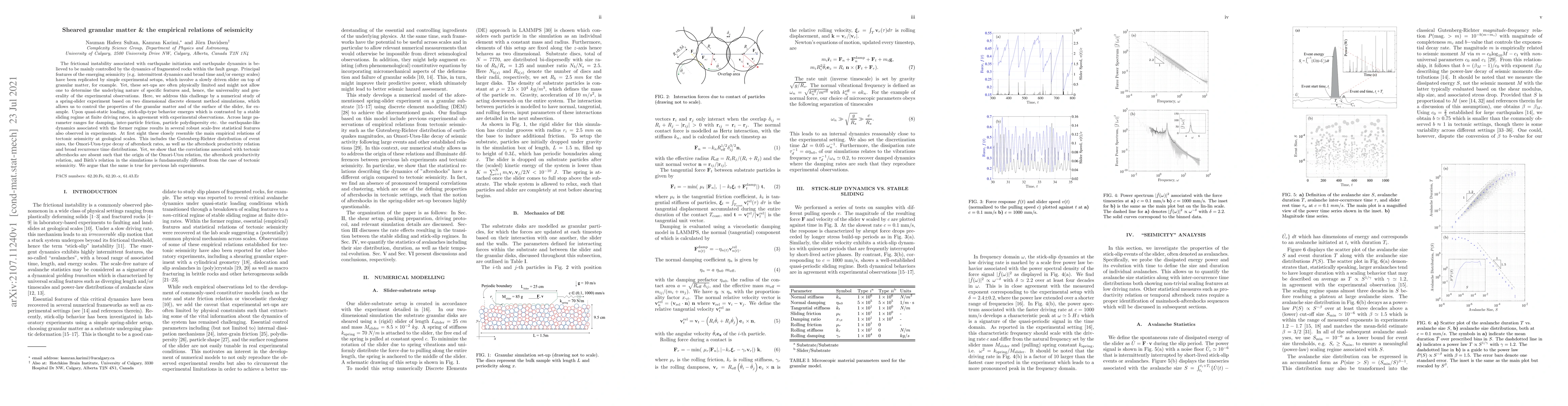A numerical study replicates seismicity patterns in experimental setups using discrete element method simulations, revealing scale-free statistical features but differing from tectonic seismicity.