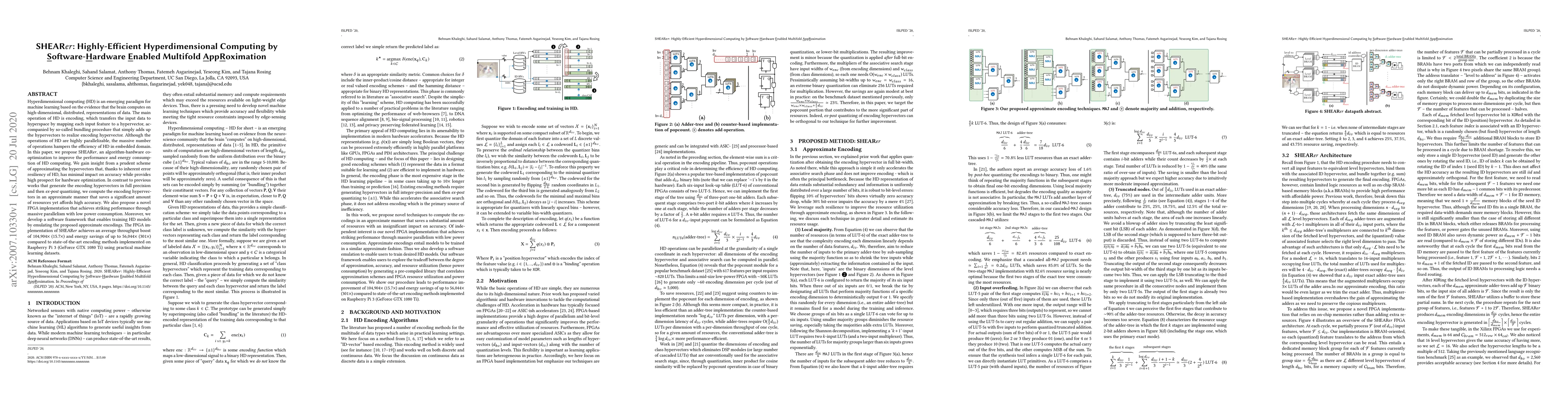 SHEARer proposes an algorithm-hardware co-optimization to enhance the efficiency and energy consumption of hyperdimensional computing (HD) by approximating hypervectors, achieving significant performance and energy savings through FPGA implementation. The approach provides a throughput boost of 104,904x and energy savings of up to 56,044x compared to existing methods.