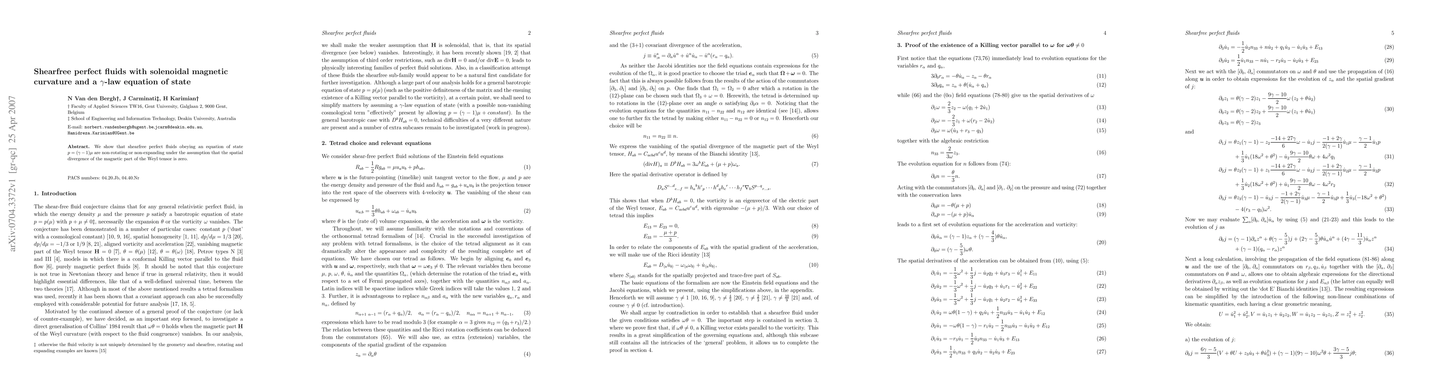 We show that shearfree perfect fluids obeying an equation of state p=(gamma -1) mu are non-rotating or non-expanding under the assumption that the spatial divergence of the magnetic part of the Weyl tensor is zero.