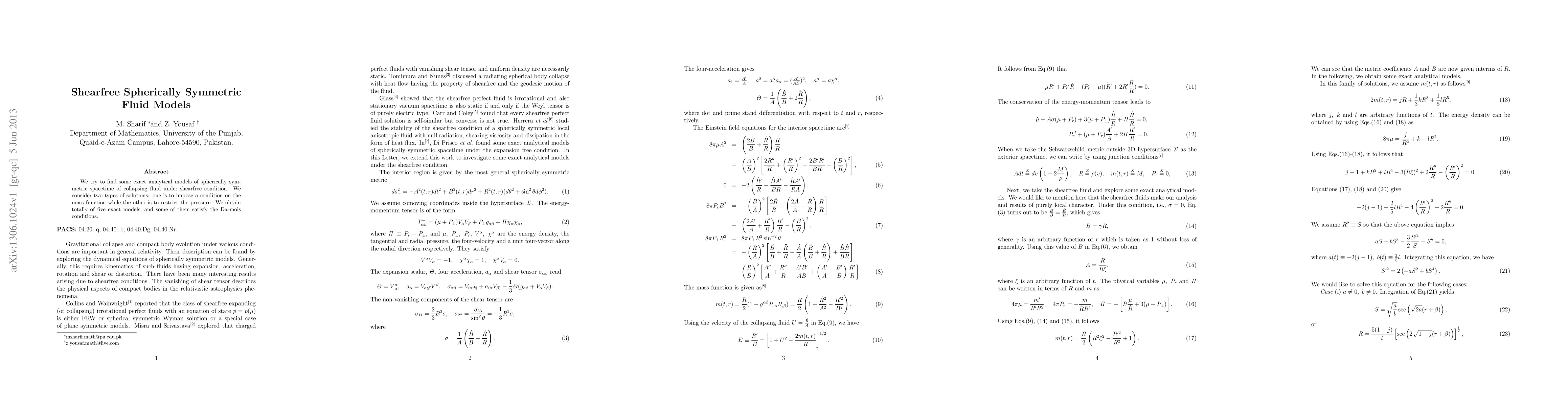 This paper explores exact analytical models of spherically symmetric collapsing fluid under shearfree conditions, deriving five exact models by imposing conditions on the mass function or restricting pressure, some of which meet the Darmois conditions.