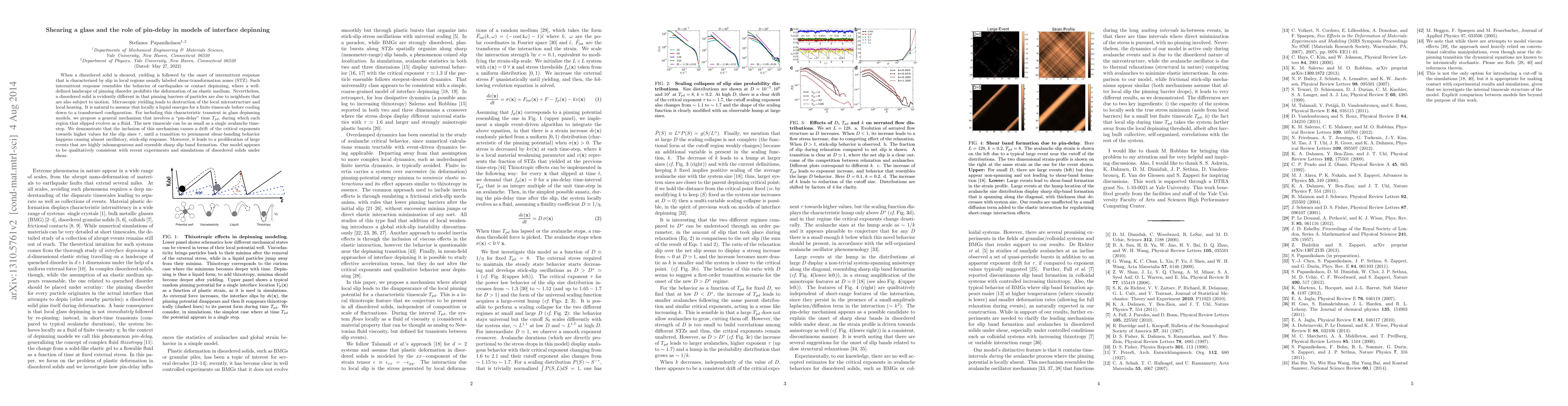 When a disordered solid is sheared, yielding is followed by the onset of intermittent response that is characterized by slip in local regions usually labeled shear-transformation zones (STZ). Such intermittent response resembles the behavior of earthquakes or contact depinning, where a well-defined landscape of pinning disorder prohibits the deformation of an elastic medium. Nevertheless, a disordered solid is evidently different in that pinning barriers of particles are due to neighbors that are also subject to motion. Microscopic yielding leads to destruction of the local microstructure and local heating. It is natural to assume that locally a liquid emerges for a finite timescale before cooling down to a transformed configuration. For including this characteristic transient in glass depinning models, we propose a general mechanism that involves a "pin-delay" time Tpd, during which each region that slipped evolves as a fluid. The new timescale can be as small as a single avalanche time-step. We demonstrate that the inclusion of this mechanism causes a drift of the critical exponents towards higher values for the slip sizes $\tau$, until a transition to permanent shear-banding behavior happens causing almost oscillatory, stick-slip response. Moreover, it leads to a proliferation of large events that are highly inhomogeneous and resemble sharp slip band formation. Our model appears to be qualitatively consistent with recent experiments and simulations of disordered solids under shear.