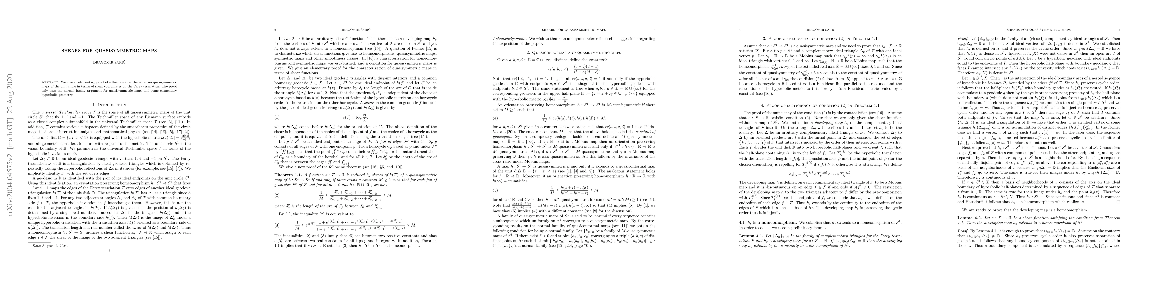 Summary: This paper provides an elementary proof for characterizing quasisymmetric maps of the unit circle using shear coordinates on the Farey tesselation, relying solely on the normal family argument and basic hyperbolic geometry.