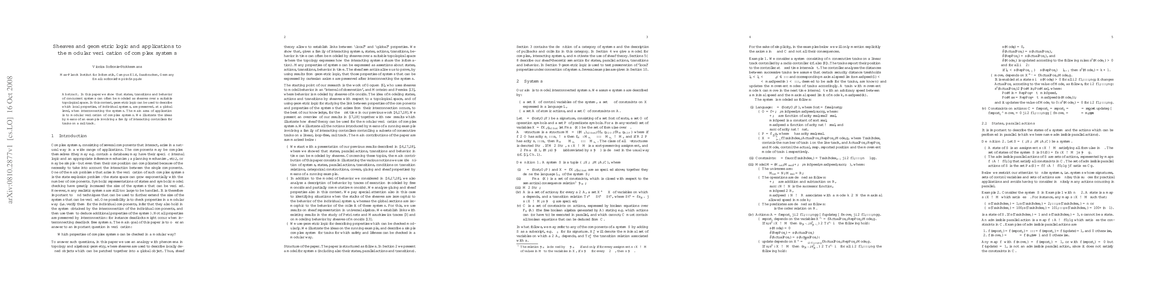 Researchers model concurrent systems as sheaves over a topological space, using geometric logic to analyze global behavior and preserve local properties when interconnected. This approach enables modular verification of complex systems, such as interacting controllers for trains on a rail track.