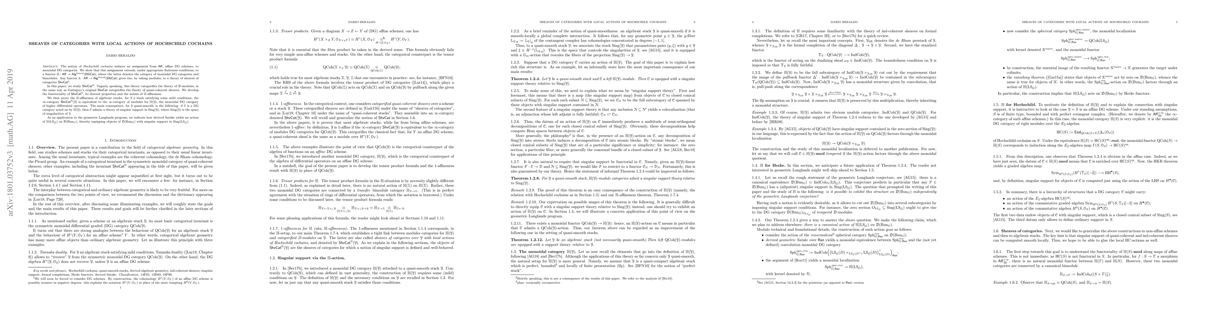 The notion of Hochschild cochains induces an assignment from $Aff$, affine DG schemes, to monoidal DG categories. We show that this assignment extends, under some appropriate finiteness conditions, to a functor $\mathbb H: Aff \to AlgBimod(DGCat)$, where the latter denotes the category of monoidal DG categories and bimodules. Now, any functor $\mathbb A: Aff \to AlgBimod(DGCat)$ gives rise, by taking modules, to a theory of sheaves of categories $ShvCat^{\mathbb A}$. In this paper, we study $ShvCat^{\mathbb H}$. Vaguely speaking, this theory categorifies the theory of D-modules, in the same way as Gaitsgory's original $ShvCat$ categorifies the theory of quasi-coherent sheaves. We develop the functoriality of $ShvCat^{\mathbb H}$, its descent properties and, most importantly, the notion of $\mathbb H$-affineness. We then prove the $\mathbb H$-affineness of algebraic stacks: for $Y$ a stack satisfying some mild conditions, the $\infty$-category $ShvCat^{\mathbb H}(Y)$ is equivalent to the $\infty$-category of modules for $\mathbb H(Y)$, the monoidal DG category defined in arXiv:1709.07867. As an application, consider a quasi-smooth stack $Y$ and a DG category $C$ with an action of $\mathbb H(Y)$. Then $C$ admits a theory of singular support in $Sing(Y)$, where $Sing(Y)$ is the space of singularities of $Y$.