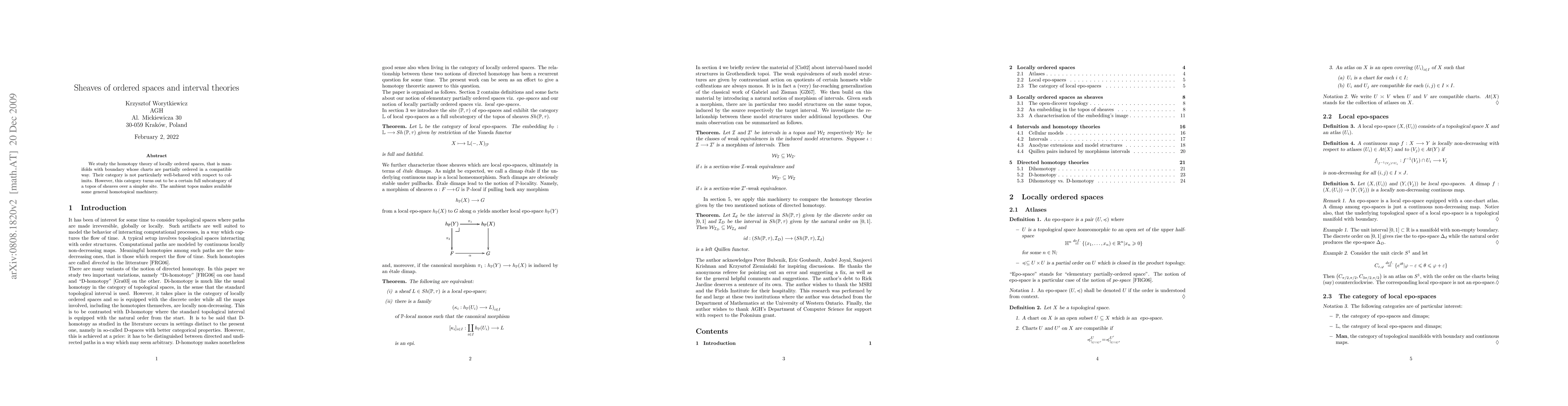This paper explores the homotopy theory of locally ordered spaces, revealing that their category, though not well-behaved with colimits, is a full subcategory within a topos of sheaves over a simpler site, enabling the application of general homotopical tools.