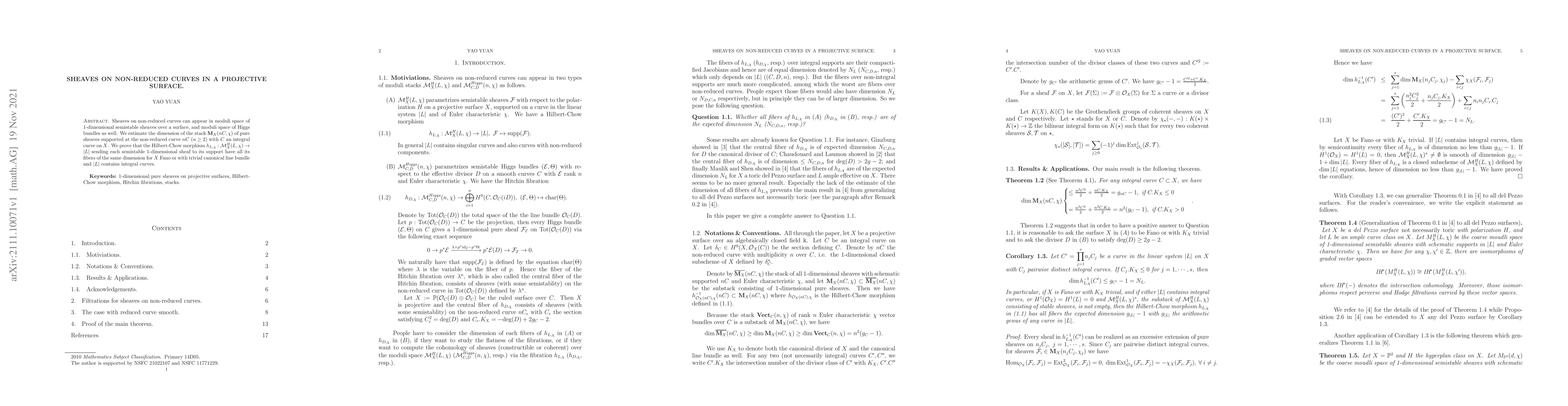 This paper investigates sheaves on non-reduced curves within projective surfaces, estimating the dimension of the moduli stack for such sheaves. It proves that the Hilbert-Chow morphism has uniform fiber dimensions under certain conditions on the surface and line bundle.
