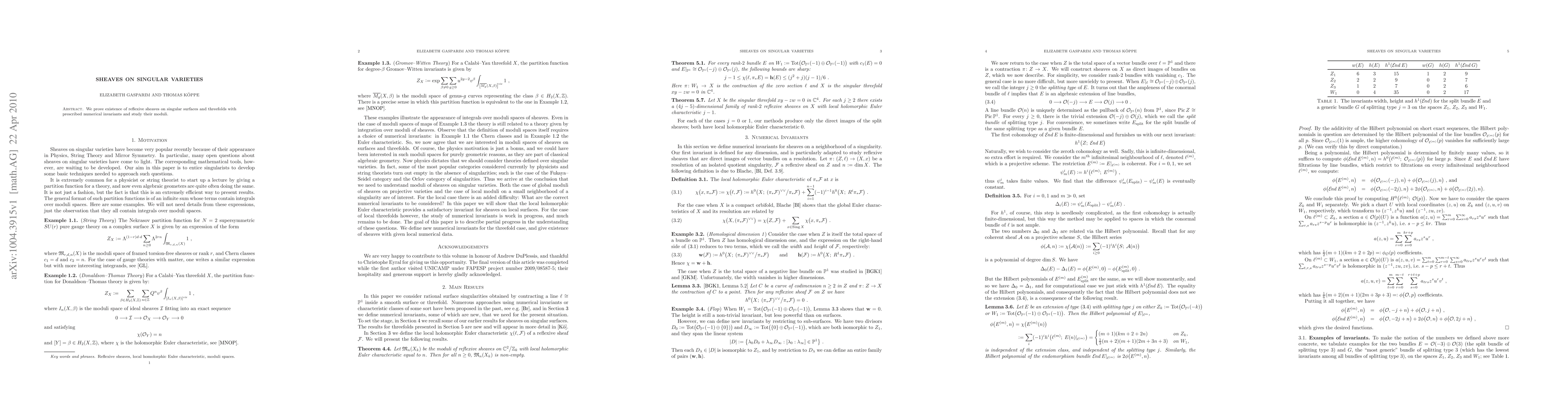 We prove existence of reflexive sheaves on singular surfaces and threefolds with prescribed numerical invariants and study their moduli.