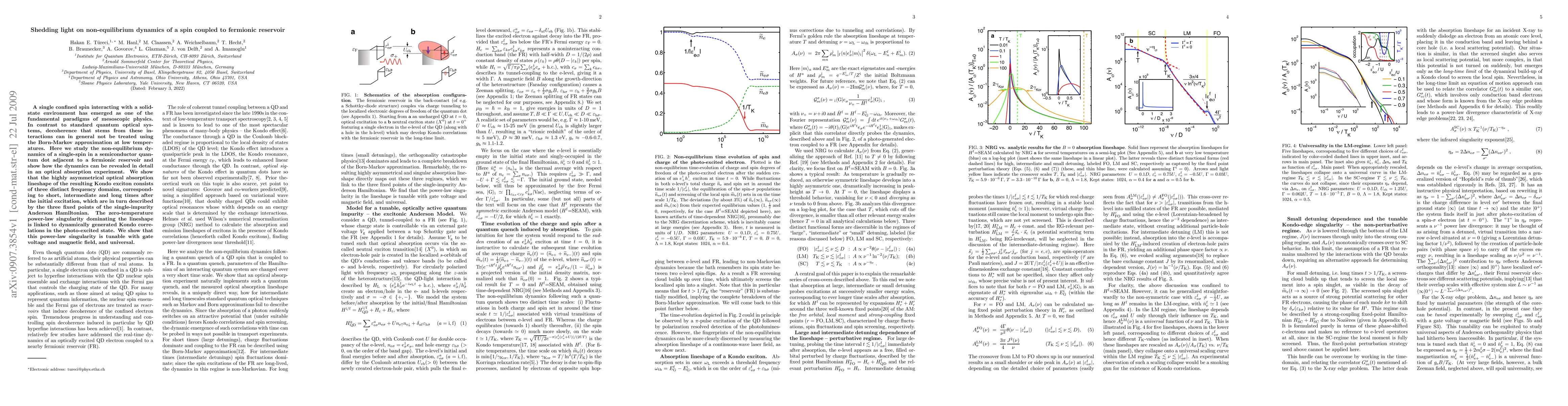 A single confined spin interacting with a solid-state environment has emerged as one of the fundamental paradigms of mesoscopic physics. In contrast to standard quantum optical systems, decoherence that stems from these interactions can in general not be treated using the Born-Markov approximation at low temperatures. Here we study the non-equilibrium dynamics of a single-spin in a semiconductor quantum dot adjacent to a fermionic reservoir and show how the dynamics can be revealed in detail in an optical absorption experiment. We show that the highly asymmetrical optical absorption lineshape of the resulting Kondo exciton consists of three distinct frequency domains, corresponding to short, intermediate and long times after the initial excitation, which are in turn described by the three fixed points of the single-impurity Anderson Hamiltonian. The zero-temperature power-law singularity dominating the lineshape is linked to dynamically generated Kondo correlations in the photo-excited state. We show that this power-law singularity is tunable with gate voltage and magnetic field, and universal.